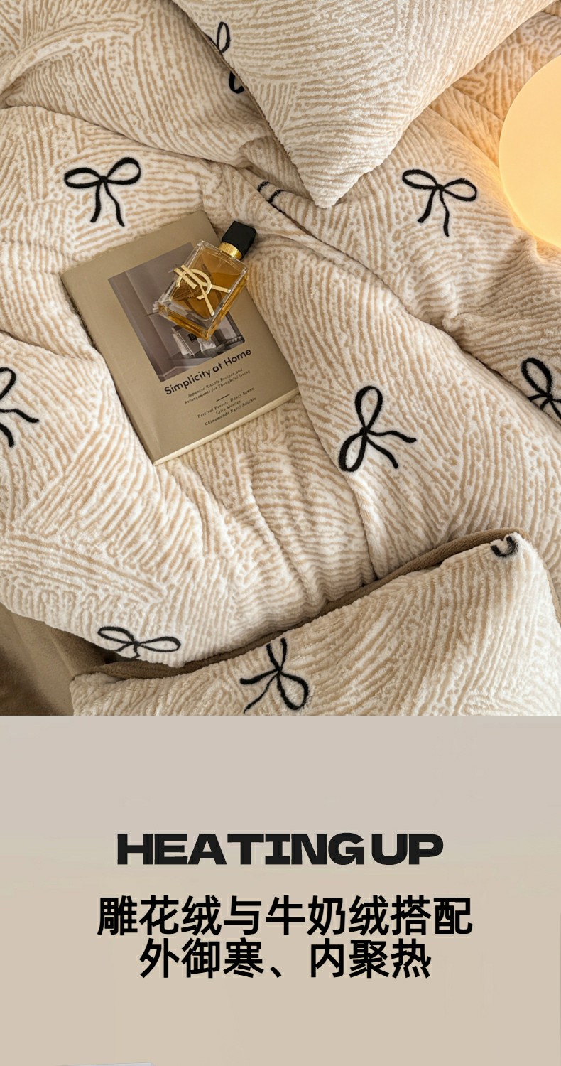 呗旺鹿 2025新款A类高克重着色烂花雕花牛奶绒四件套 梦幻芭蕾粉