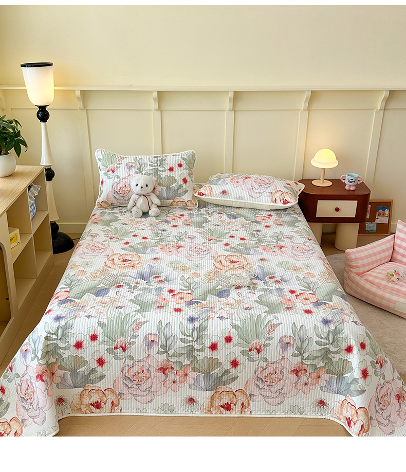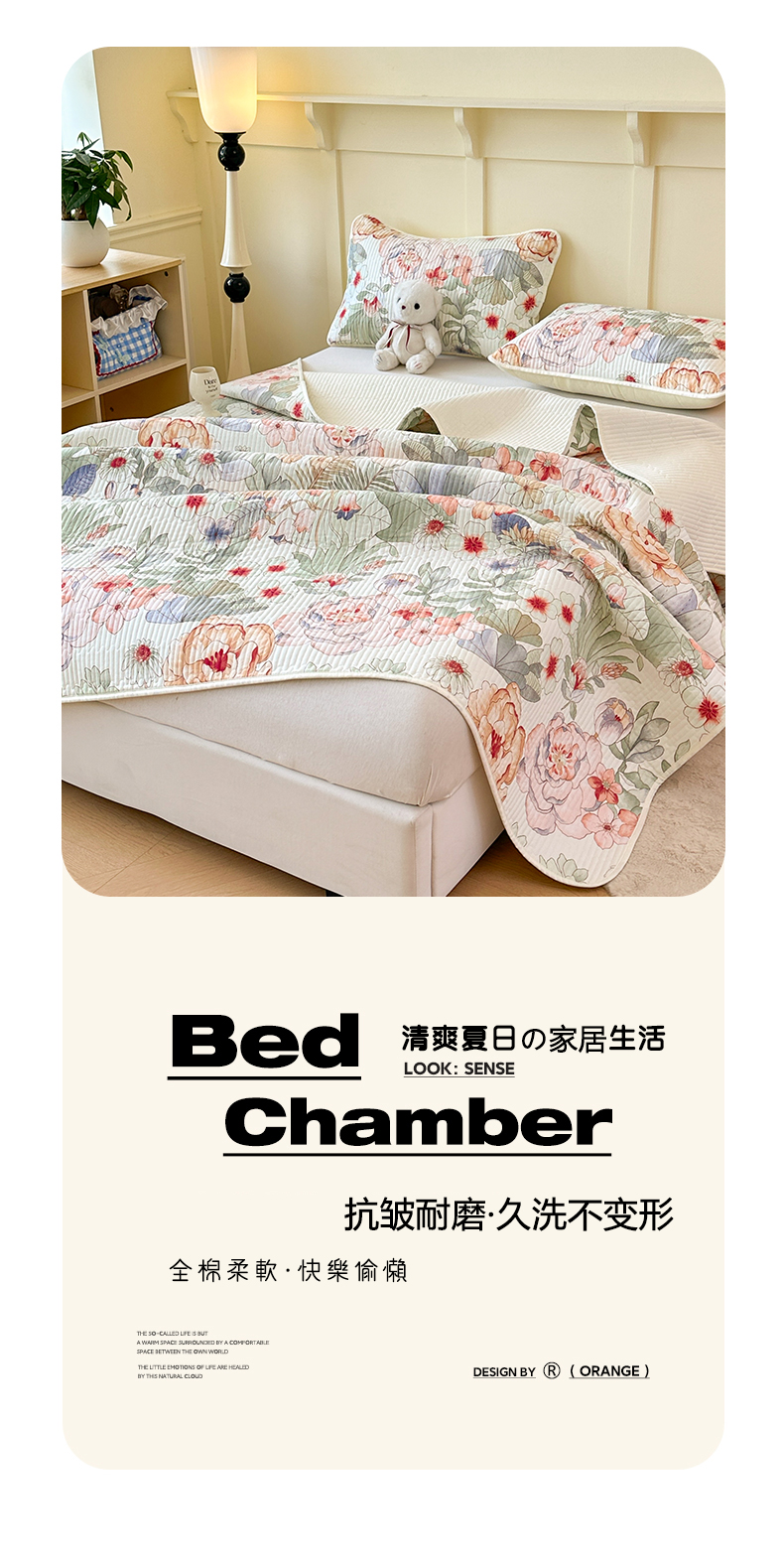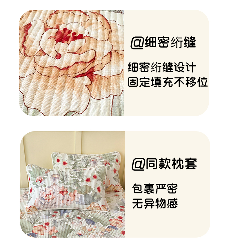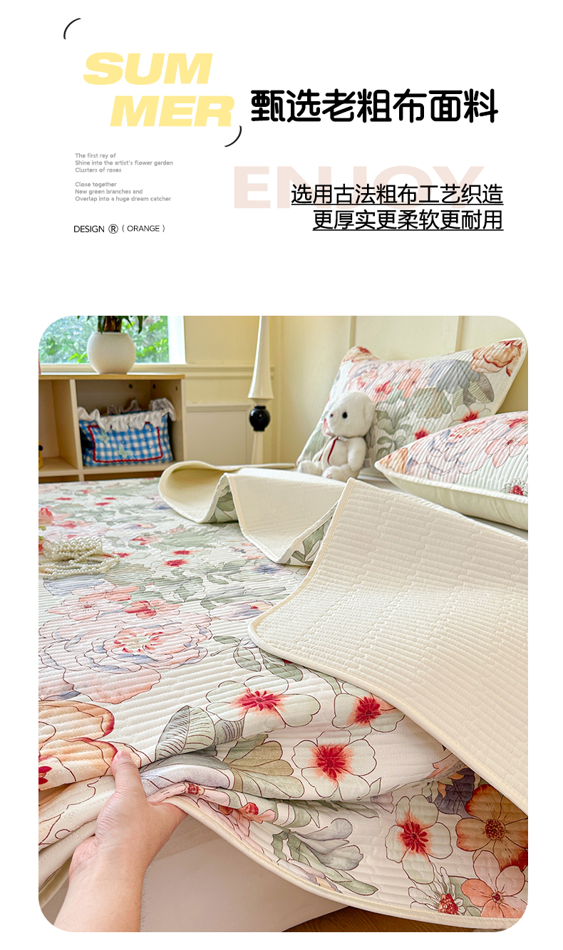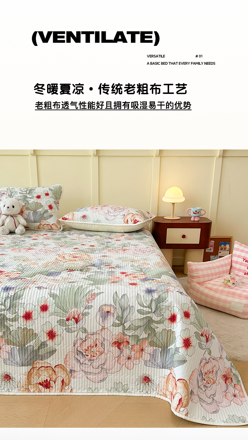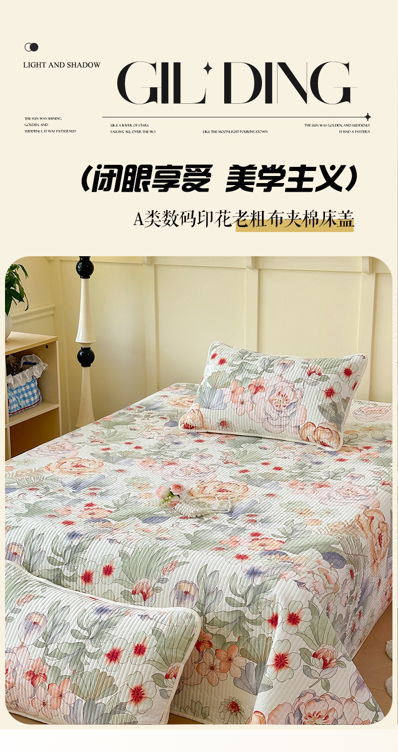 • 91家纺网 家纺一手货源 找家纺 寐居家纺 2025新款A类数码印花老粗布夹棉床盖 蔓野花语