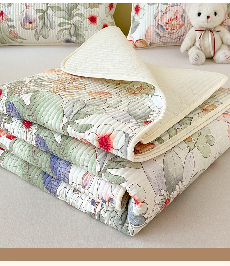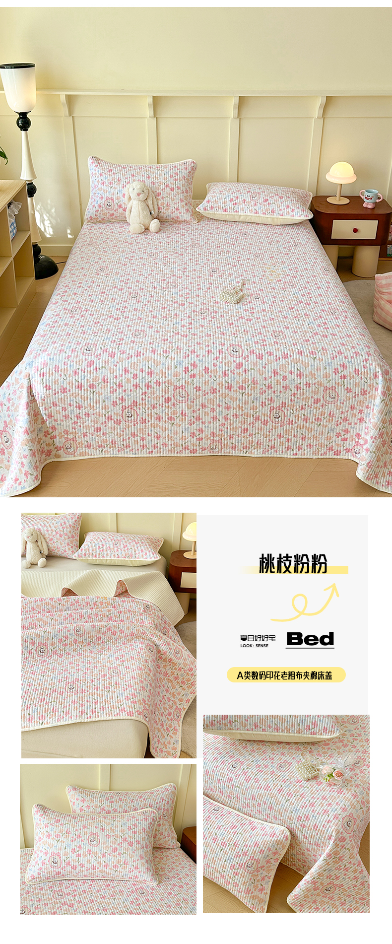 寐居家纺 2025新款A类数码印花老粗布夹棉床盖 蔓野花语