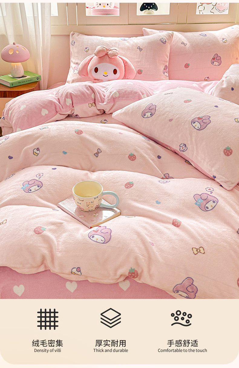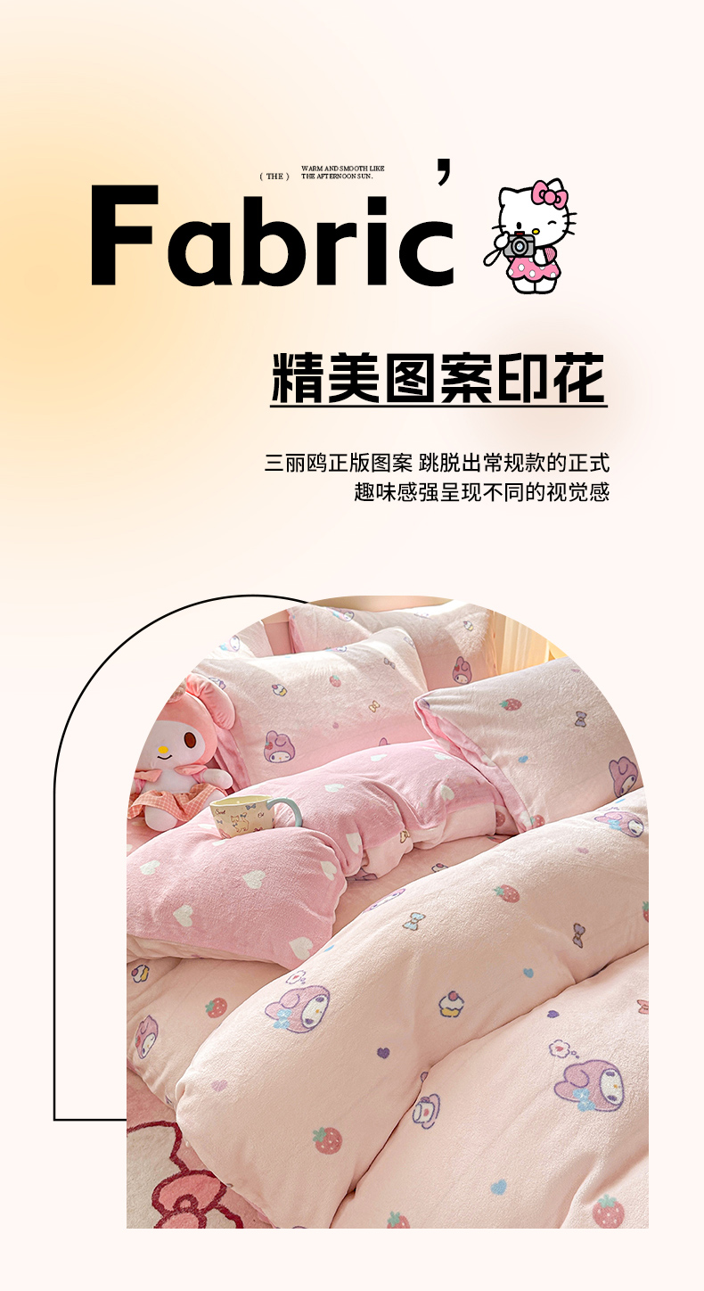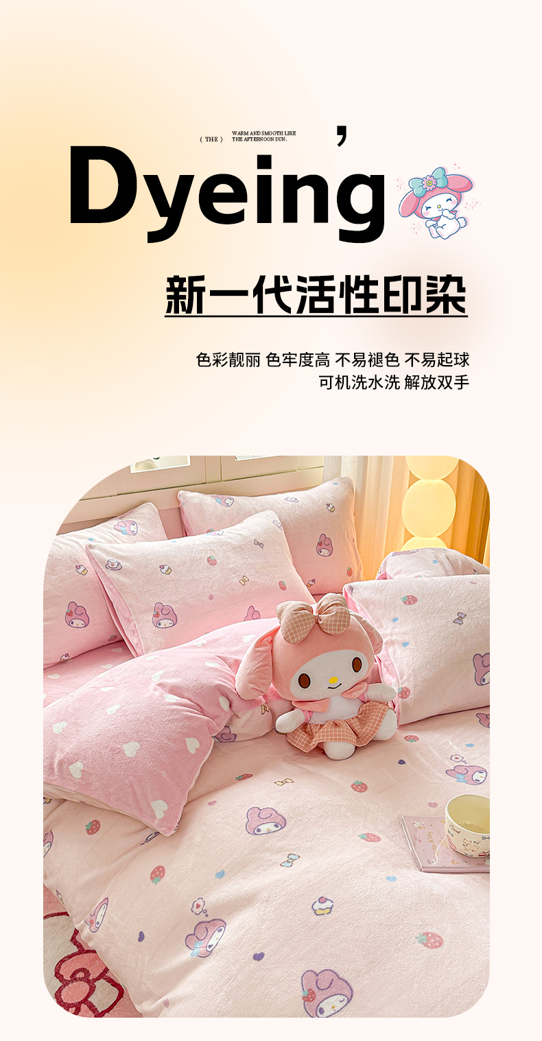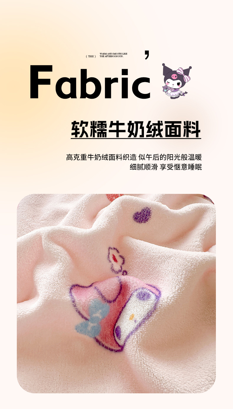 当前位置: 91家纺网 > 商品网购 > 床品套件 > 四件套 > 牛奶绒四件套 > 博雅 2025新款三丽鸥正版授权高克重牛奶绒小版四件套提供买家秀 牛奶绒小版-开心库洛米