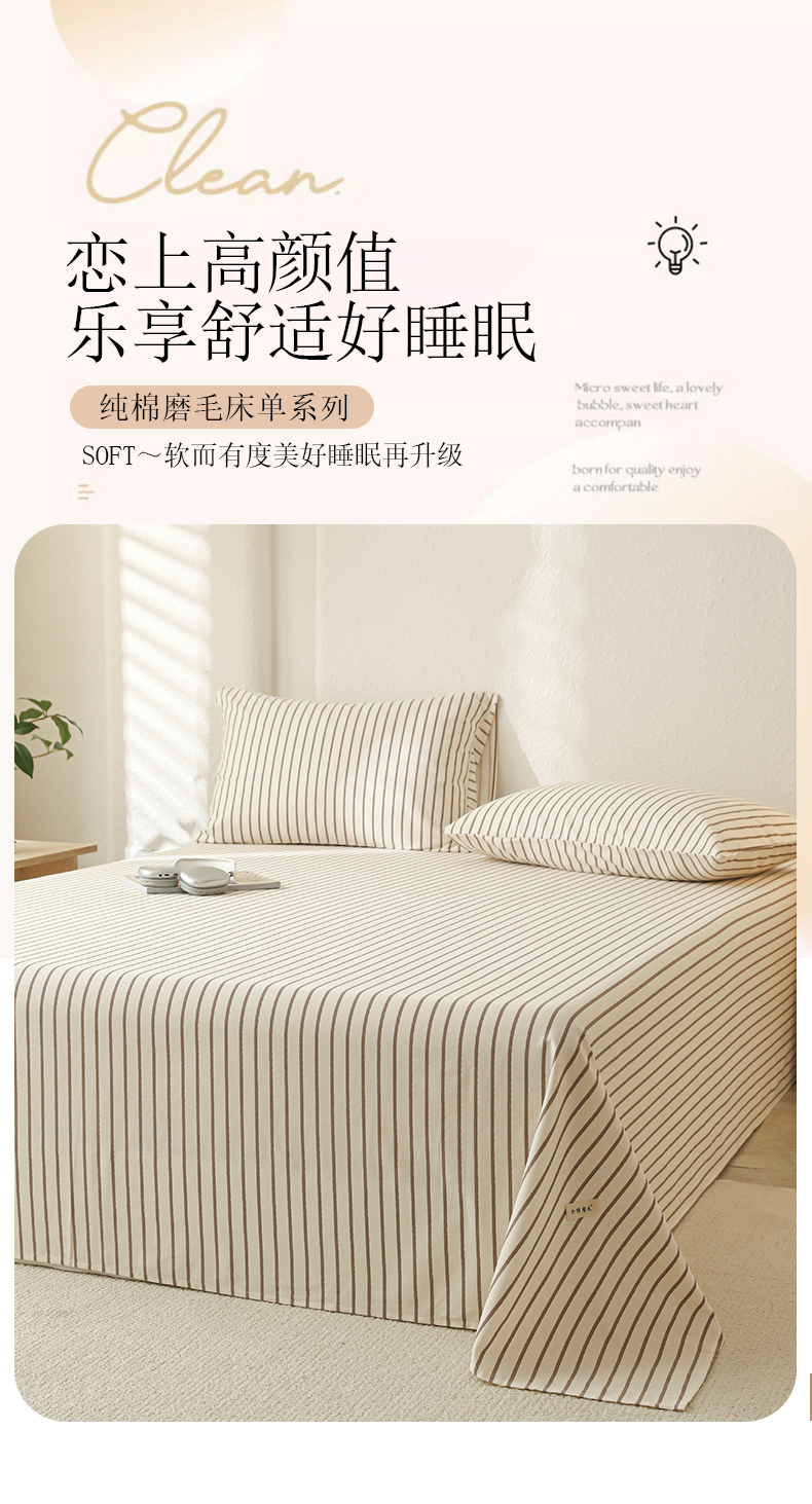 简宜家居(朝初家纺) 2025新款纯棉全棉磨毛单床单系列 线素-灰