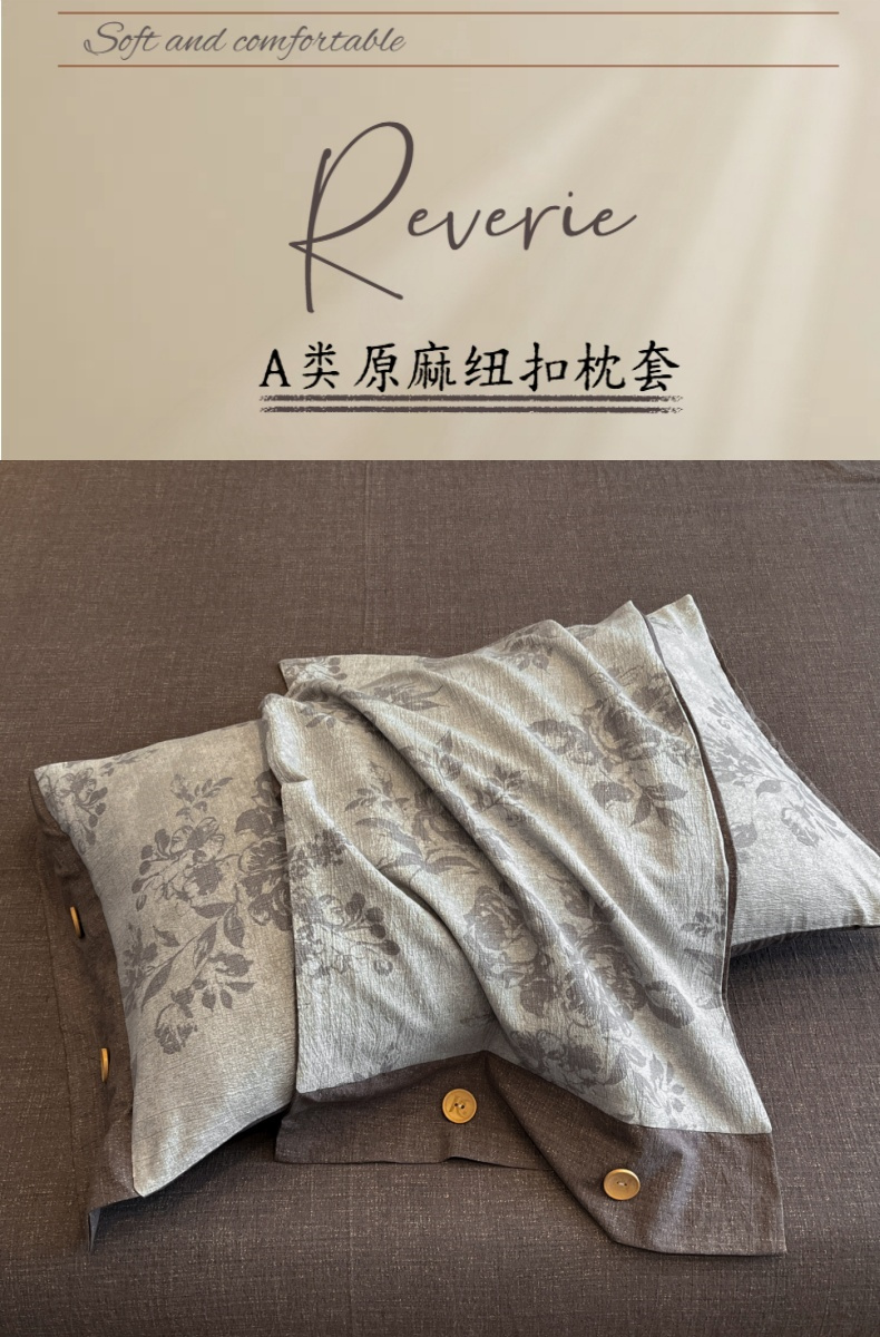 商品名称:梦舒羽 2025新款原麻纽扣枕套宿舍单只枕芯套枕头套一对装枕芯内胆套 古堡花园-咖