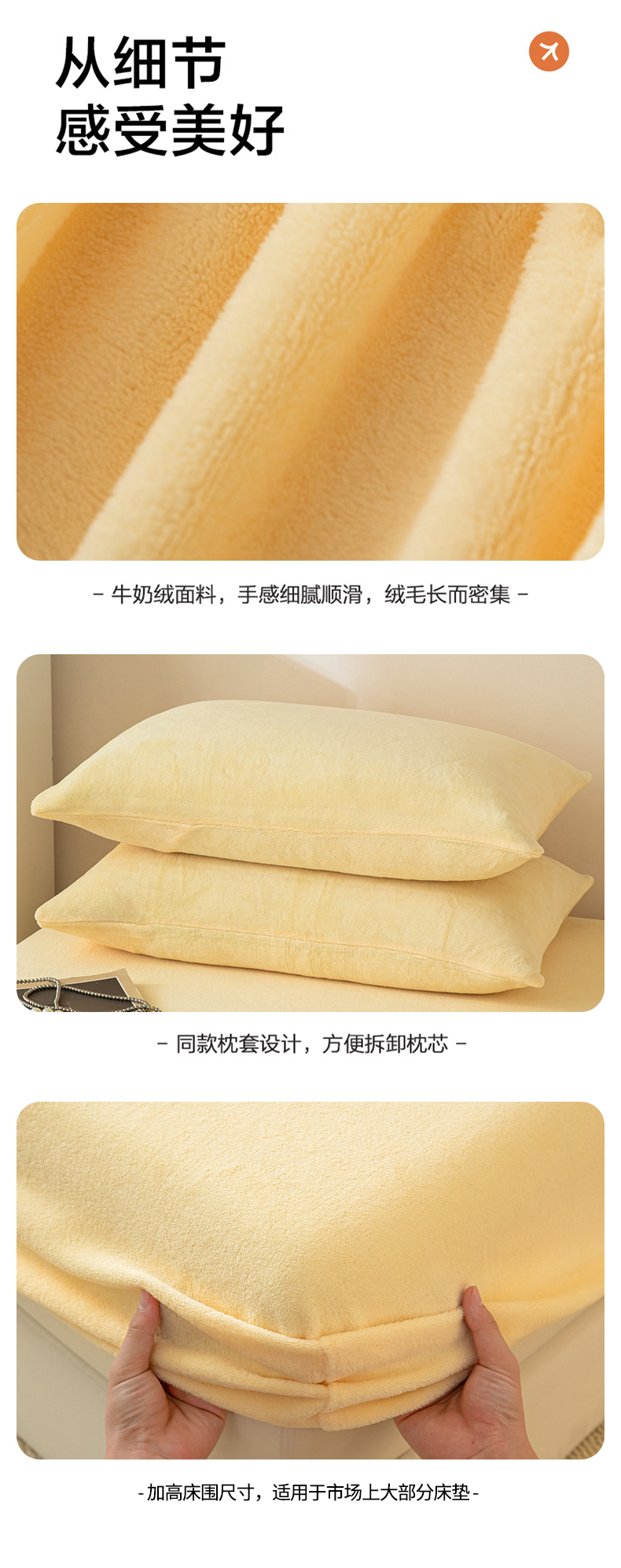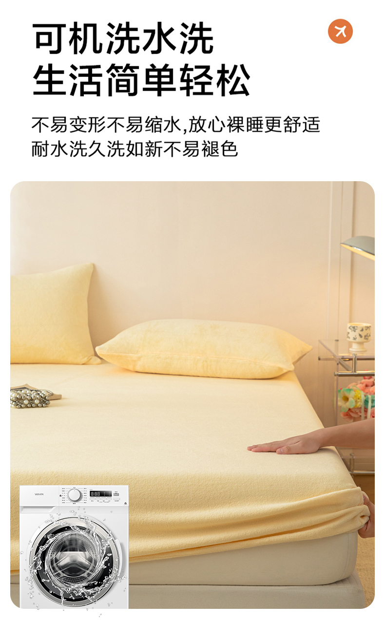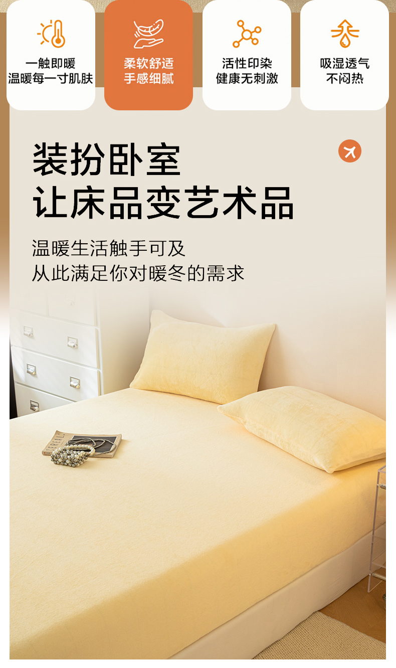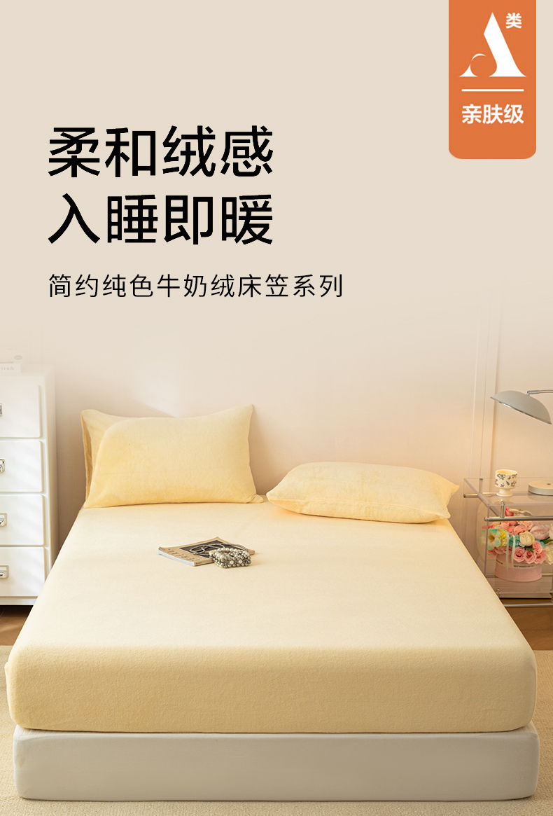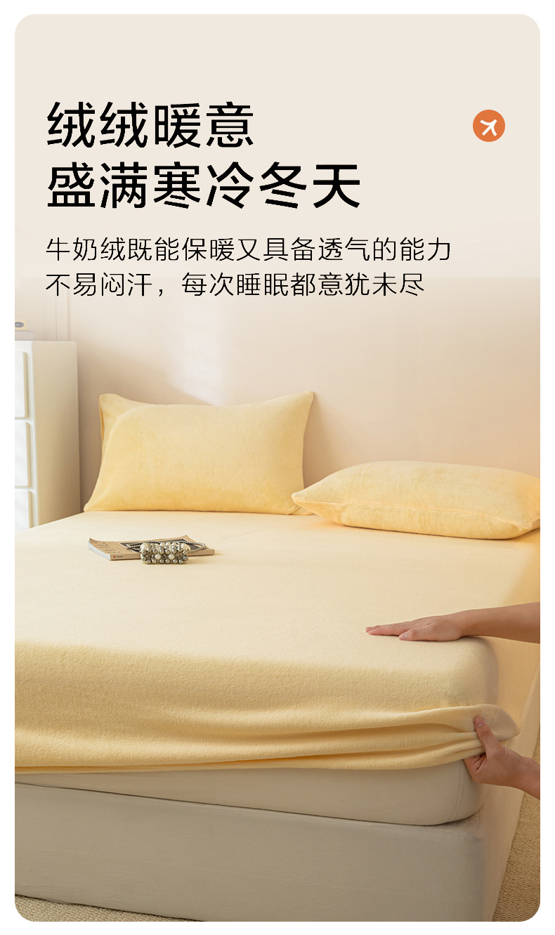 • 91家纺网 家纺一手货源 找家纺 眠博士 2025新款简约牛奶绒纯色单床笠-场景二 牛奶绒纯色床笠-鹅黄