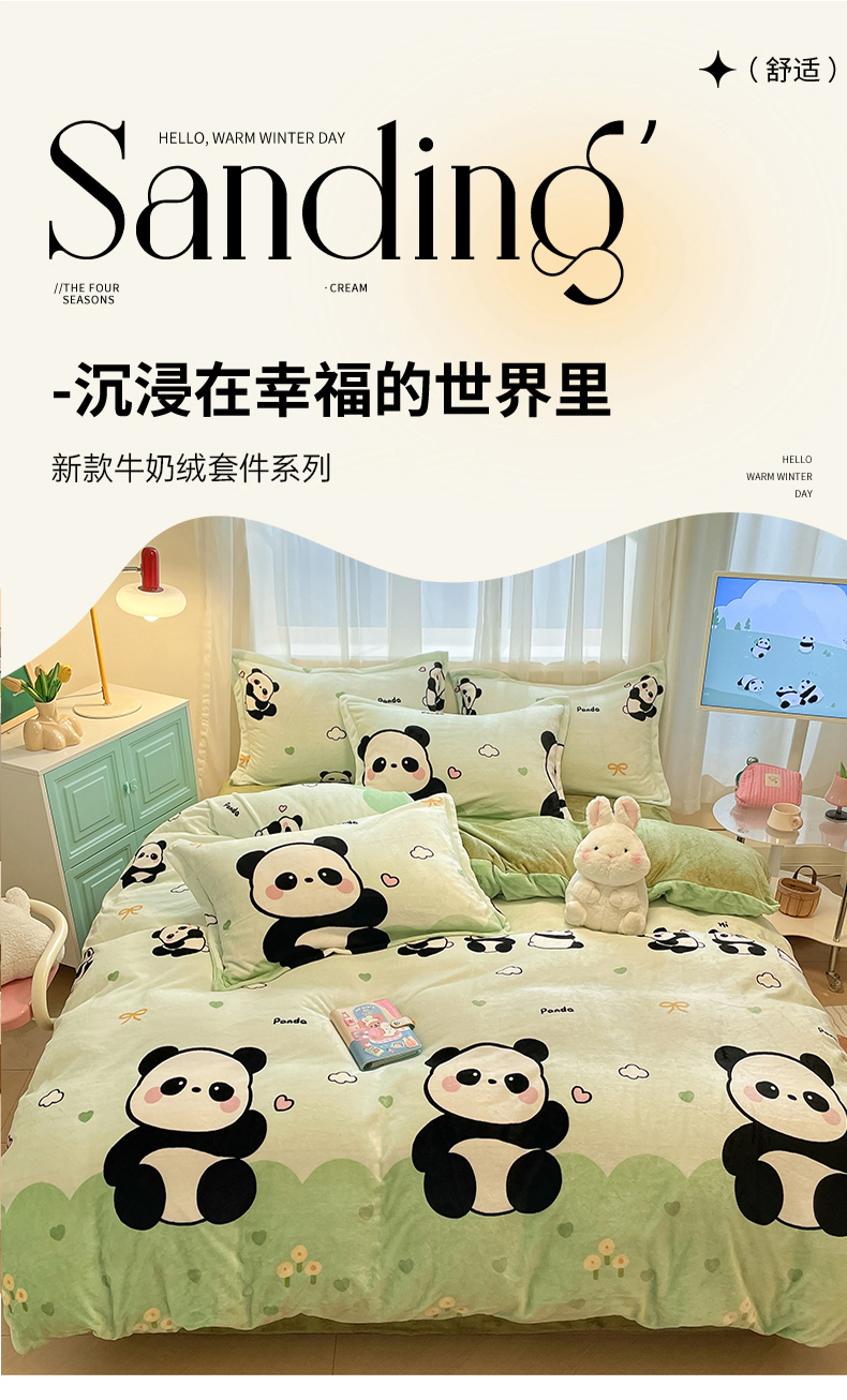 当前位置: 91家纺网 > 商品网购 > 床品套件 > 四件套 > 牛奶绒四件套 > 川悦生活 2025新款高克重牛奶绒四件套-系列二 熊猫乐园
