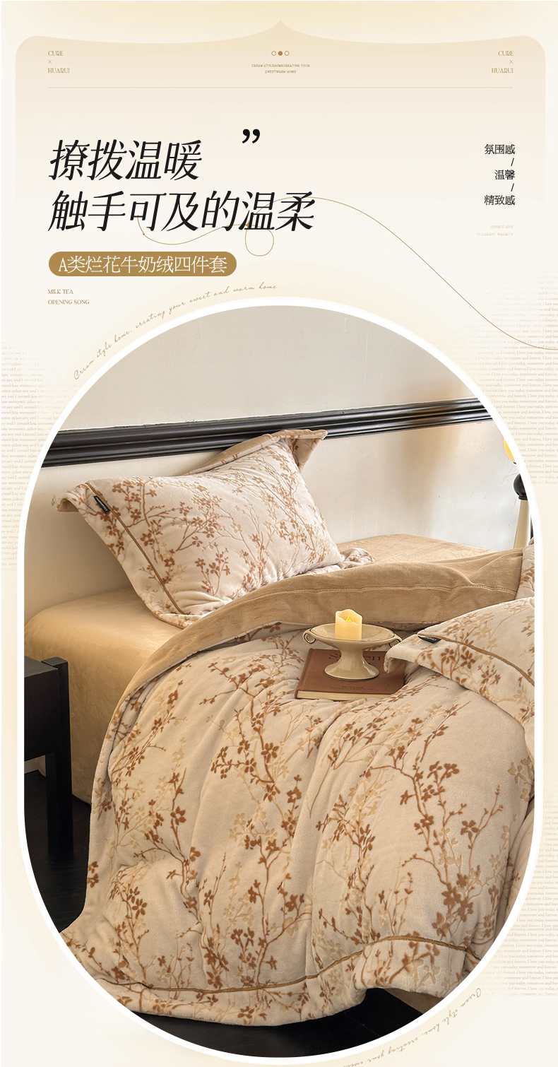 (总)盛秋家纺 2025新款佩拉着色烂花牛奶绒四件套【轻奢风格】,山茶花语-咖,素影-灰,馥色芬芳-粉,花溪听雨-咖,清新叶语-浅咖,山茶花语-粉,山茶花语-蓝,素影-浅咖