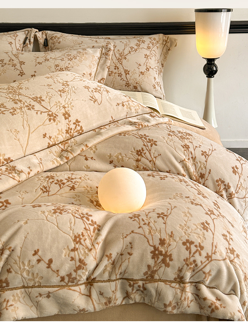 (总)盛秋家纺 2025新款佩拉着色烂花牛奶绒四件套【简约风格】