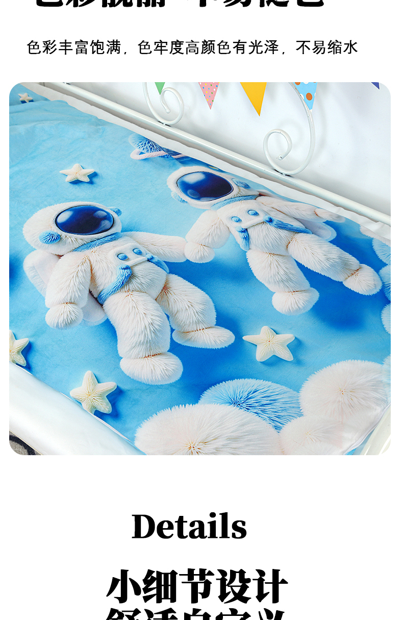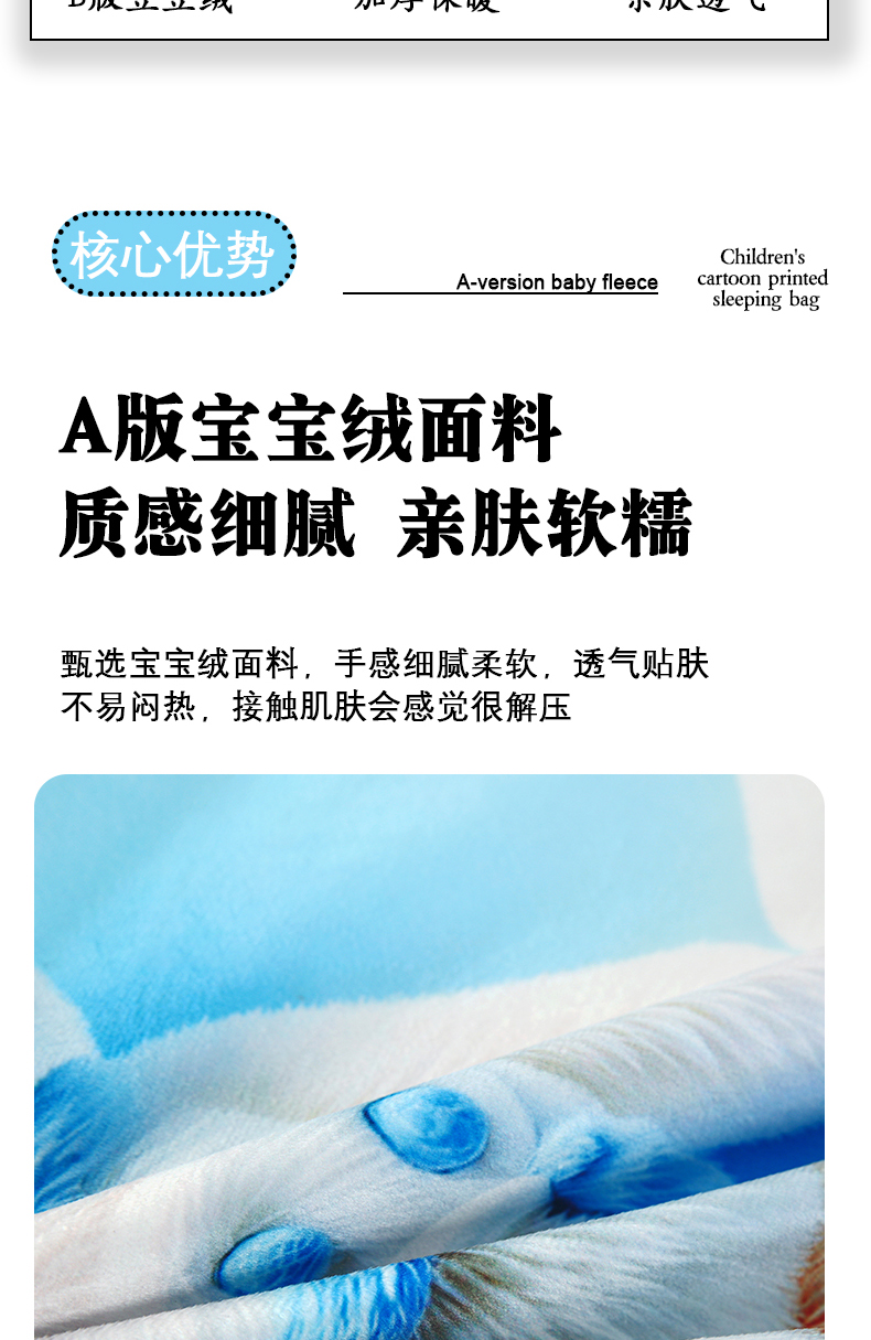 商品名称:(总)沁童儿童用品店 2025新款儿童3D立体印花A版宝宝绒+B版豆豆绒儿童睡袋