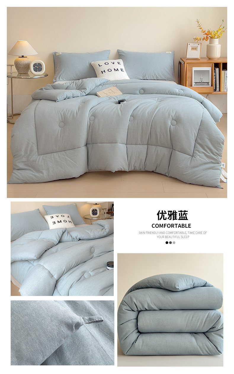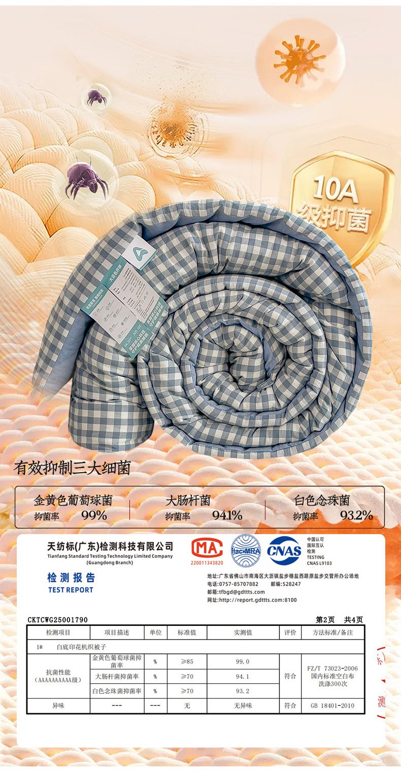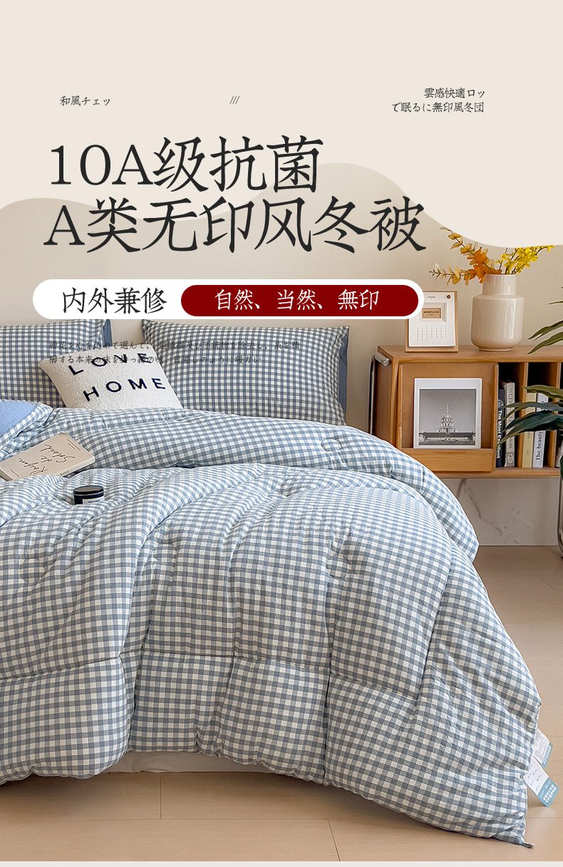 • 91家纺网 家纺一手货源 找家纺 梵克保罗 2025秋冬新款10A抗菌无印风冬被被子被芯 天蓝小格