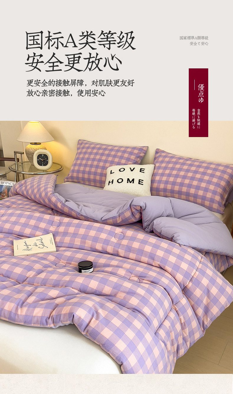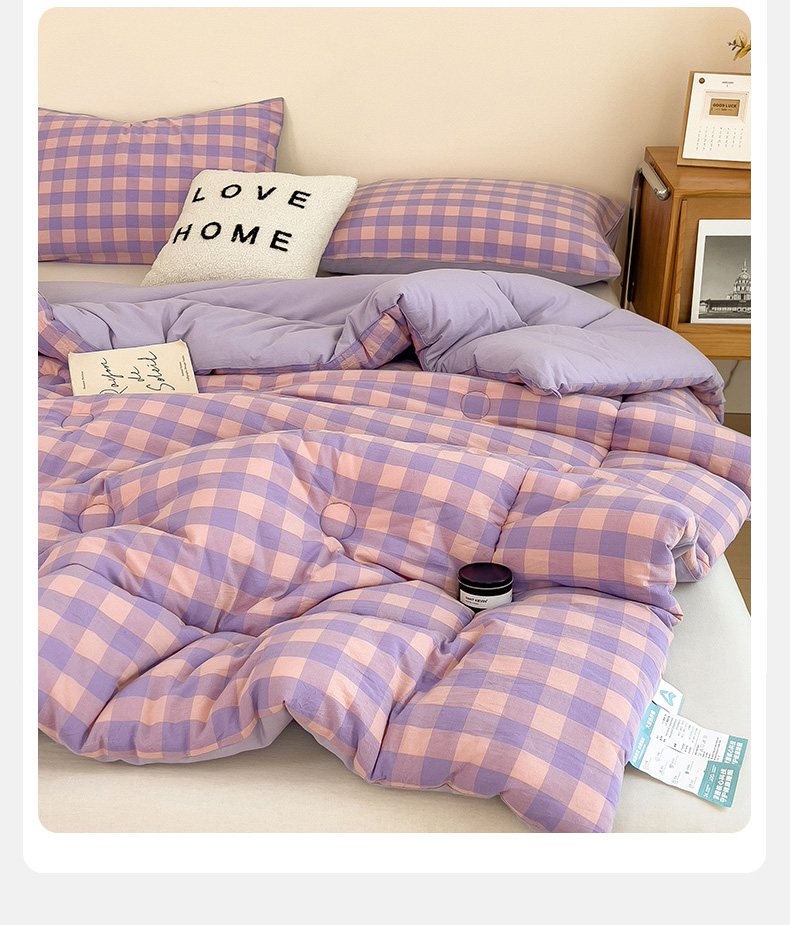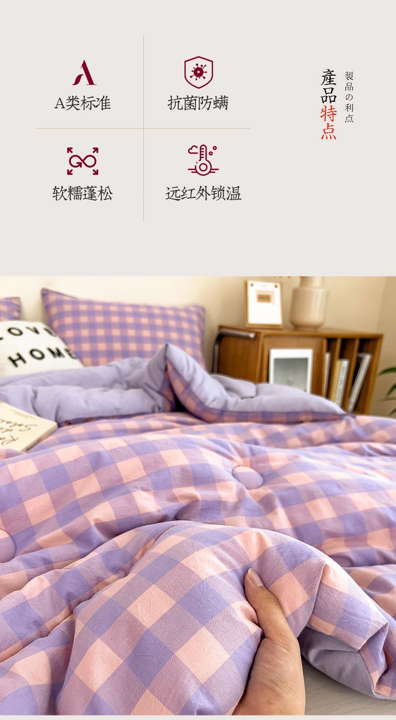 • 91家纺网 家纺一手货源 找家纺 梵克保罗 2025秋冬新款10A抗菌无印风冬被被子被芯 紫粉中格