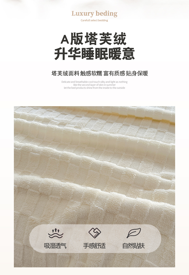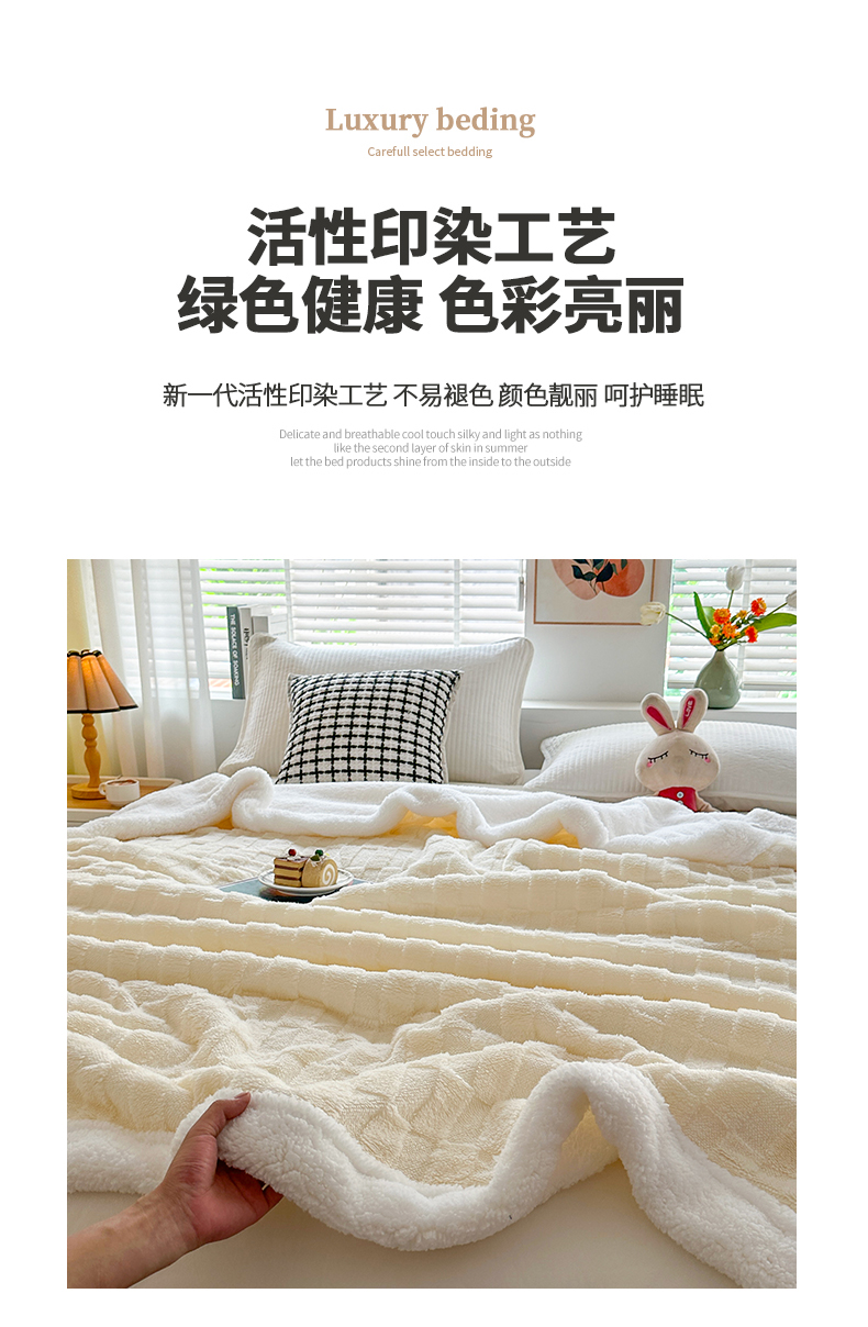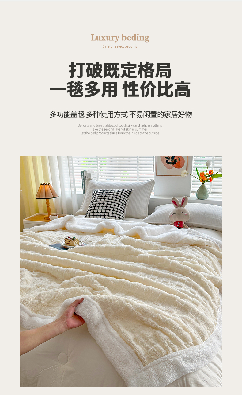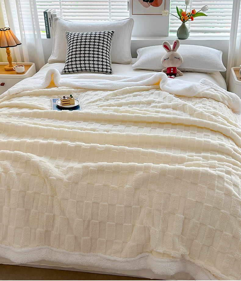 悦织湾家纺 2025新款塔芙绒羊羔绒舒棉绒毛毯方格系列 方格米白