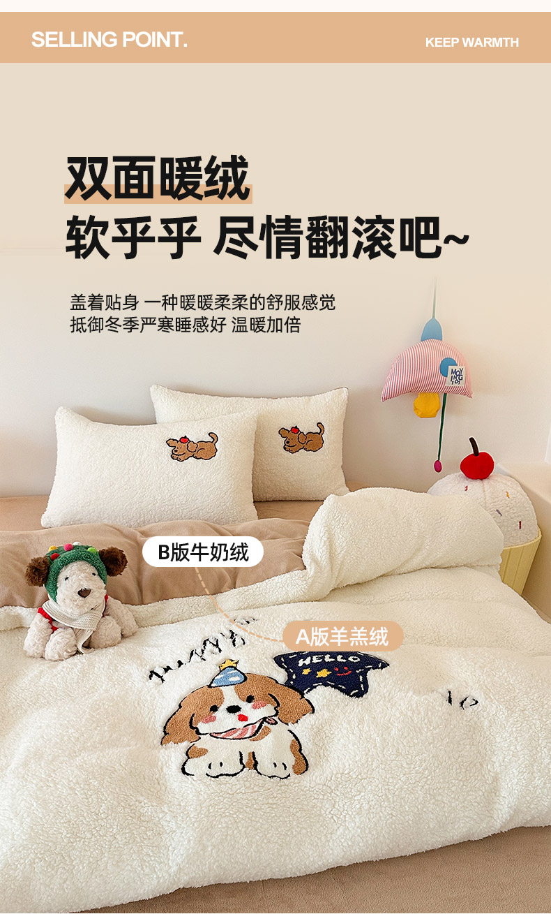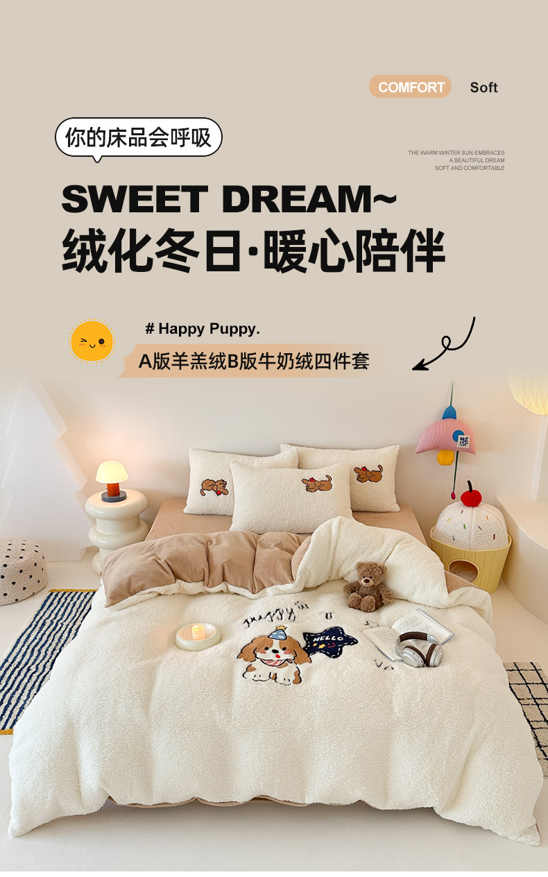 (总)梓之赫 2025新款大版羊羔绒牛奶绒卡通四件套冬季加厚保暖,爱心猪猪-白粉,爱心猪猪-粉,爱心猪猪-黄,爱心猪猪-蓝,大耳鼠狗-白蓝,大耳鼠狗-蓝,可爱猫咪-白粉,可爱猫咪-粉,晚安狗-白蓝,晚安狗-黄,晚安狗-咖,晚安狗-蓝