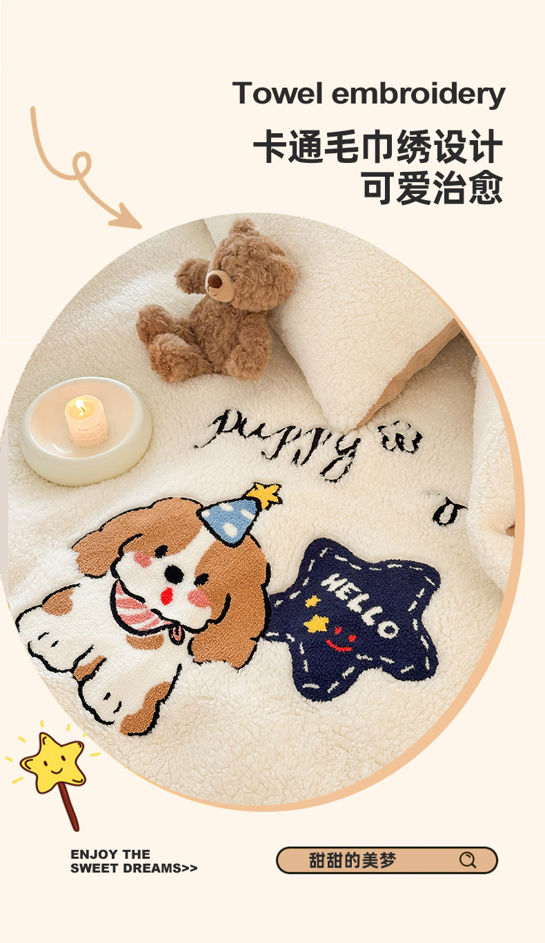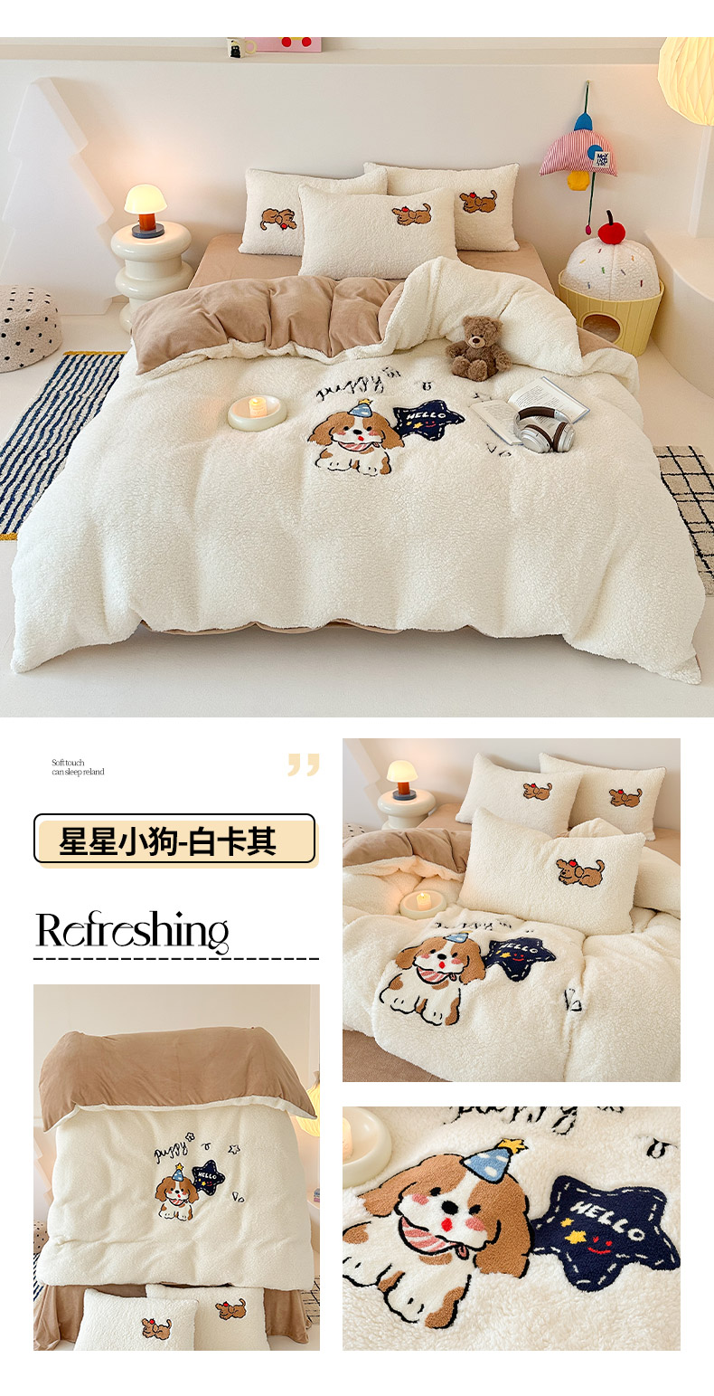 (总)梓之赫 2025新款小版羊羔绒牛奶绒卡通四件套冬季加厚保暖,汉堡-白卡其,汉堡-黄,汉堡-咖,企鹅-白卡其,企鹅-粉,企鹅-蓝,曲奇-白粉,星星小狗-白卡其,星星小狗-蓝