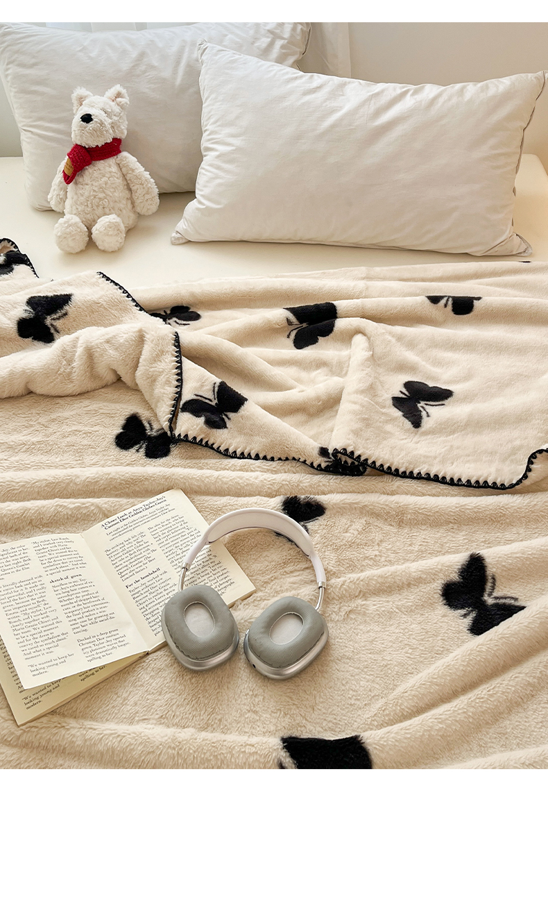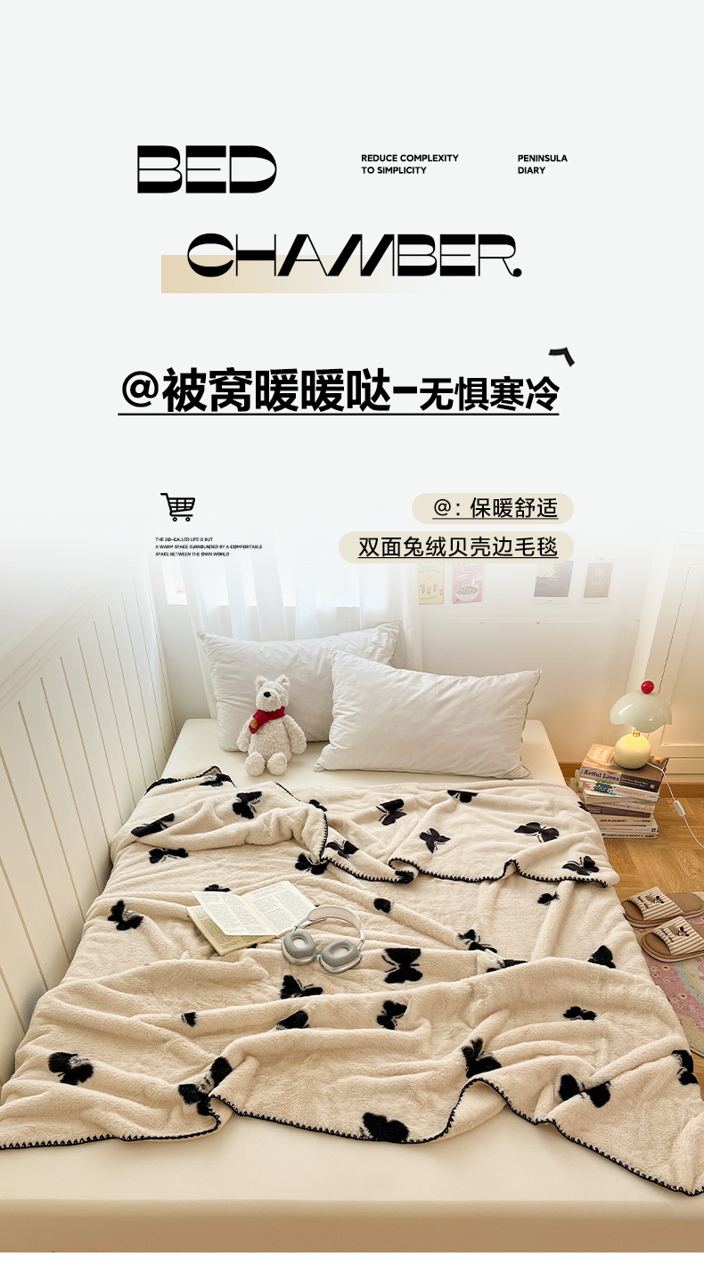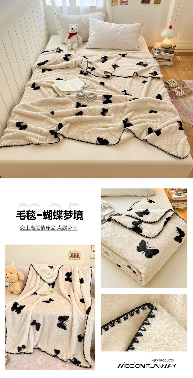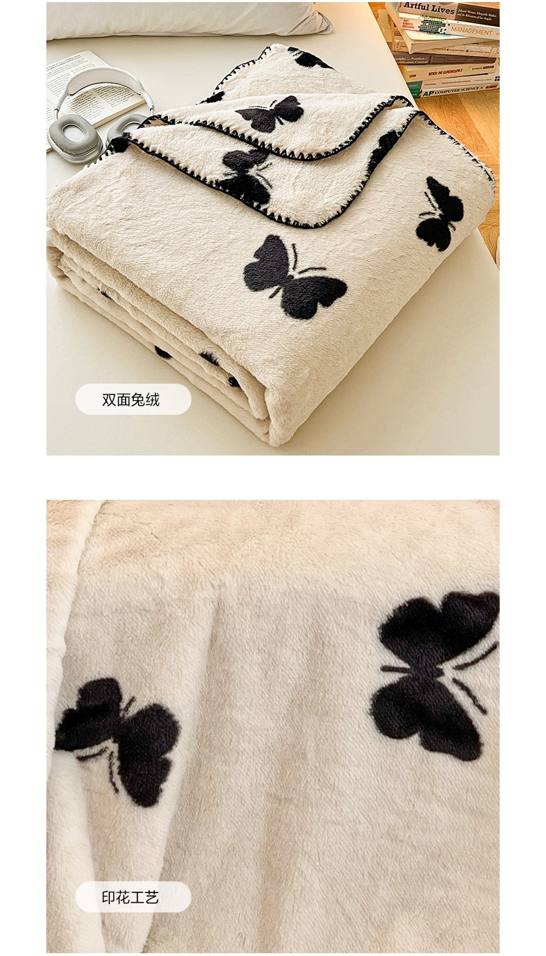 商品名称:雅居纺家纺 2025新款贝壳边双面兔绒印花毛毯 毛毯-蝴蝶梦境