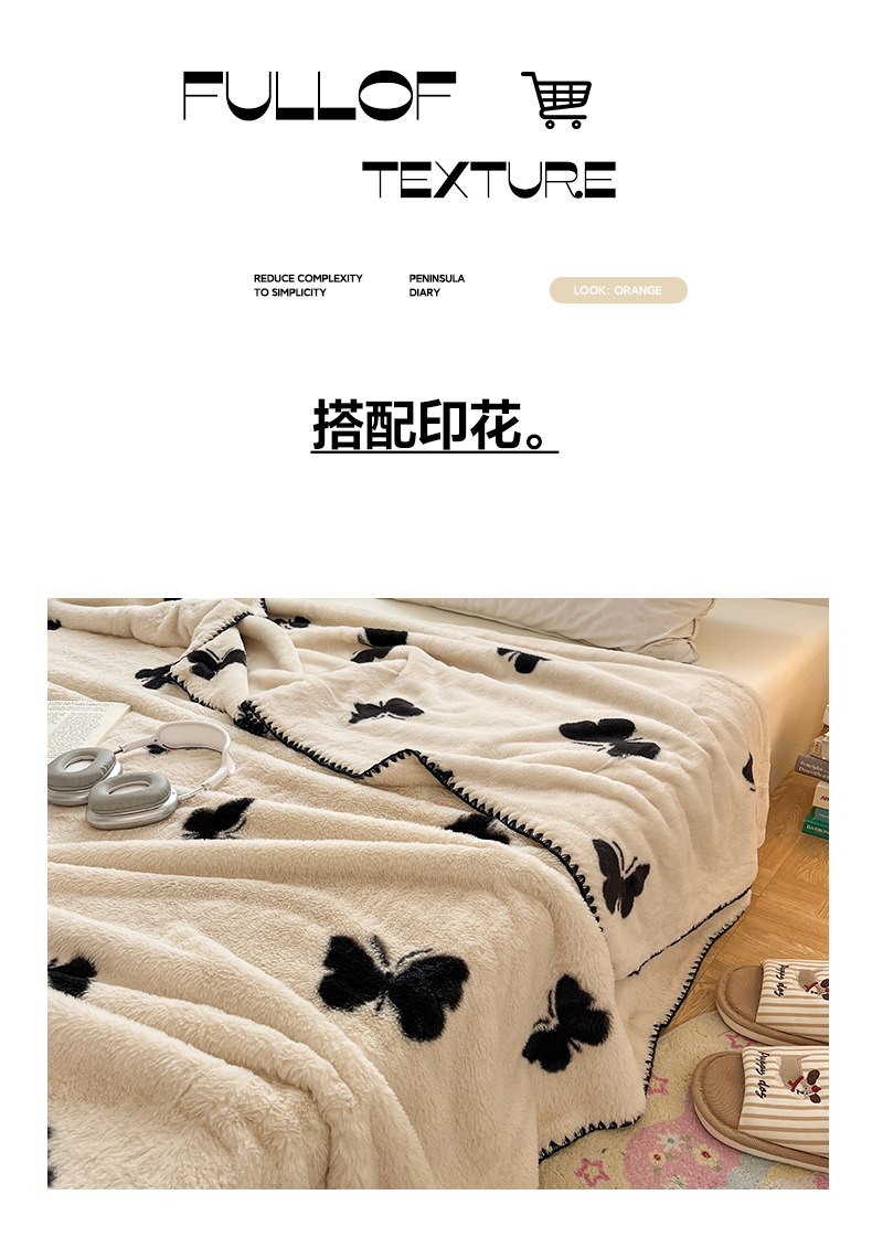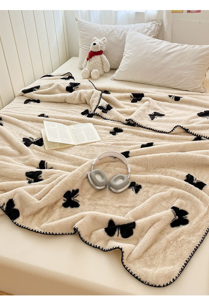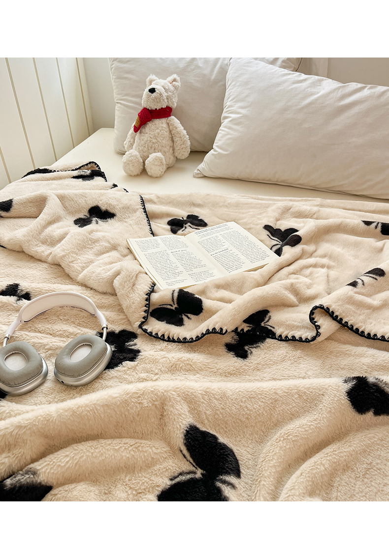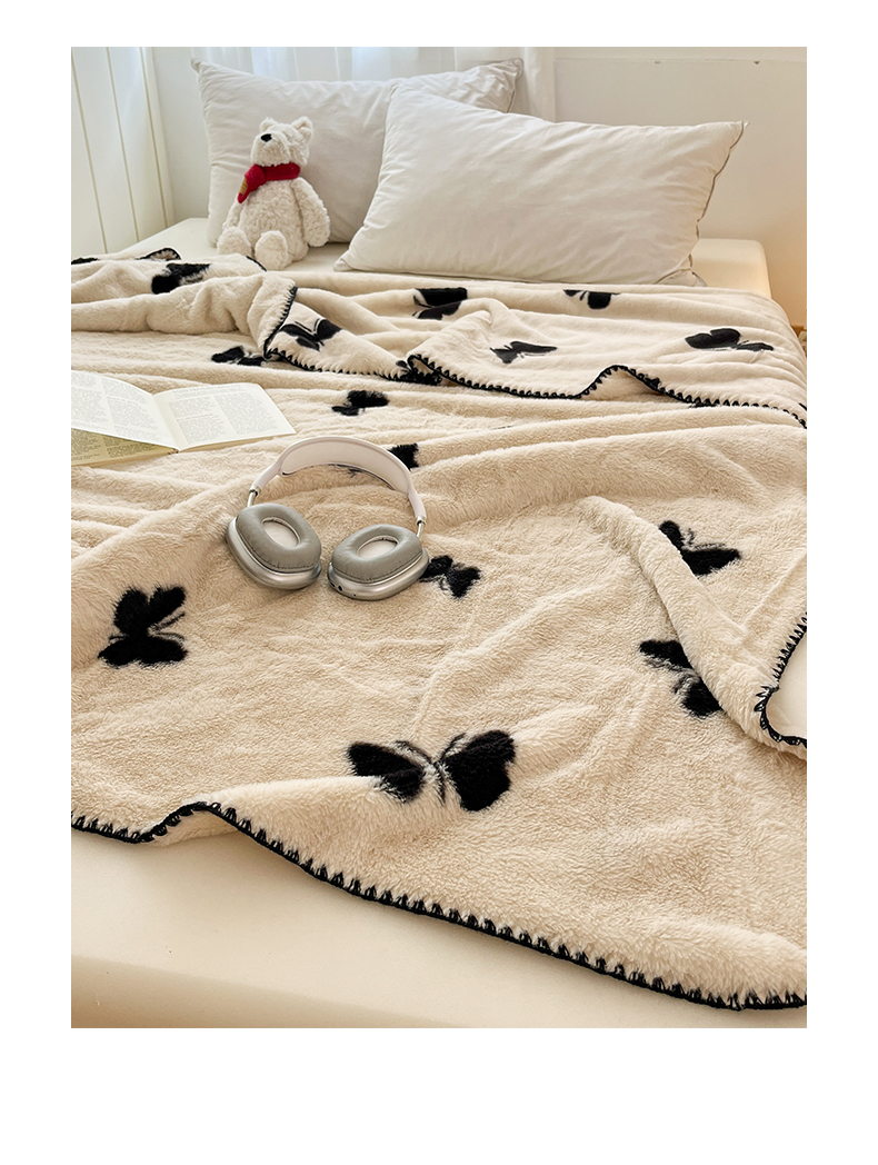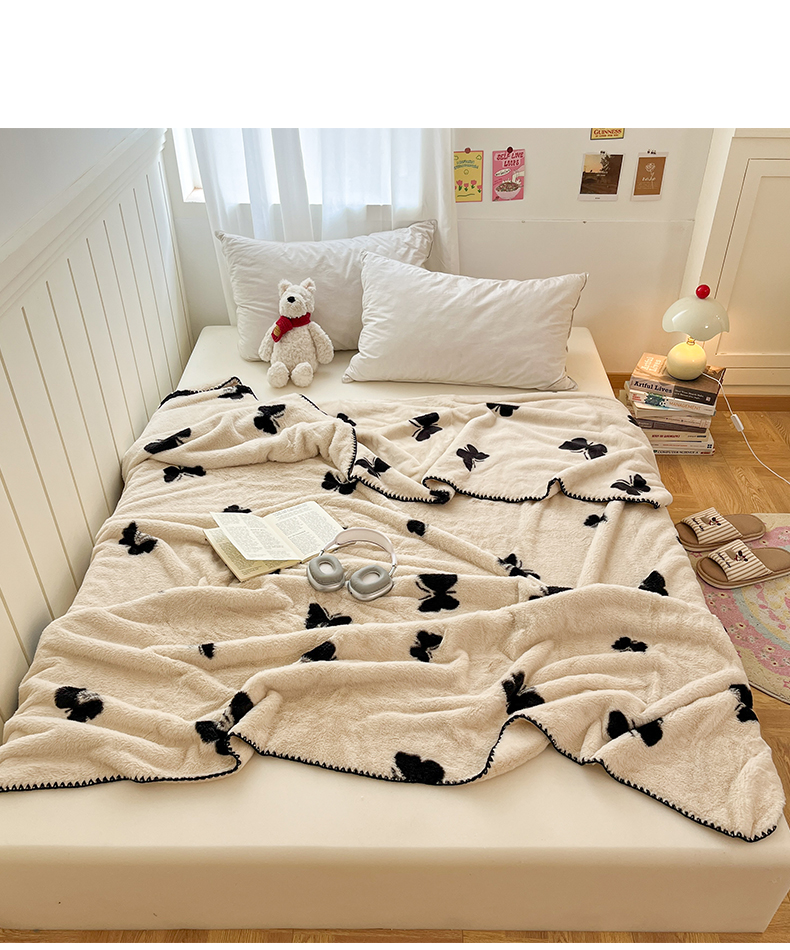 商品名称:雅居纺家纺 2025新款贝壳边双面兔绒印花毛毯 毛毯-蝴蝶梦境