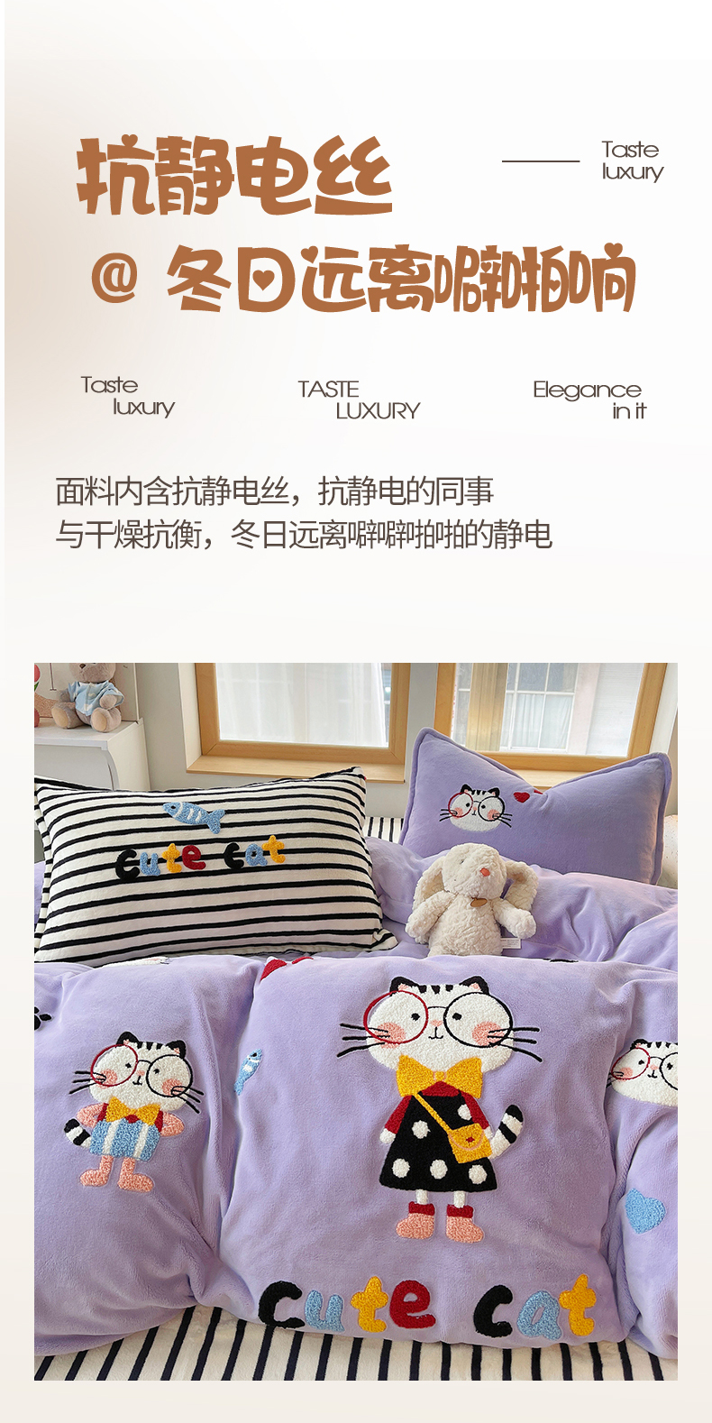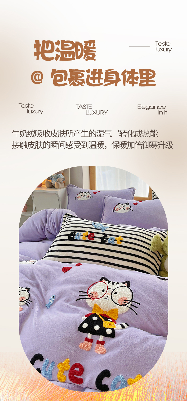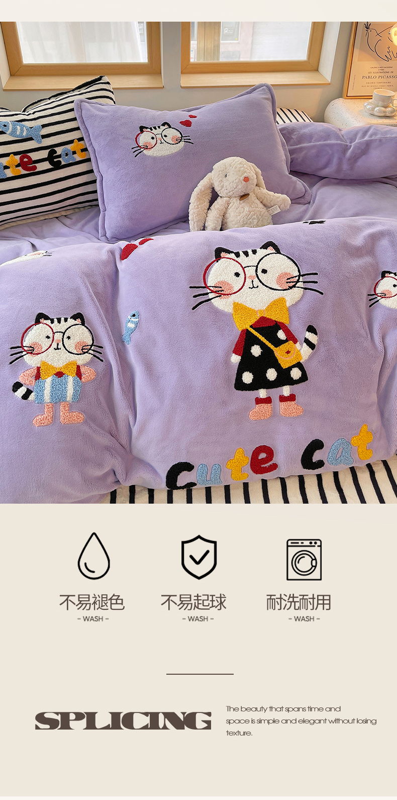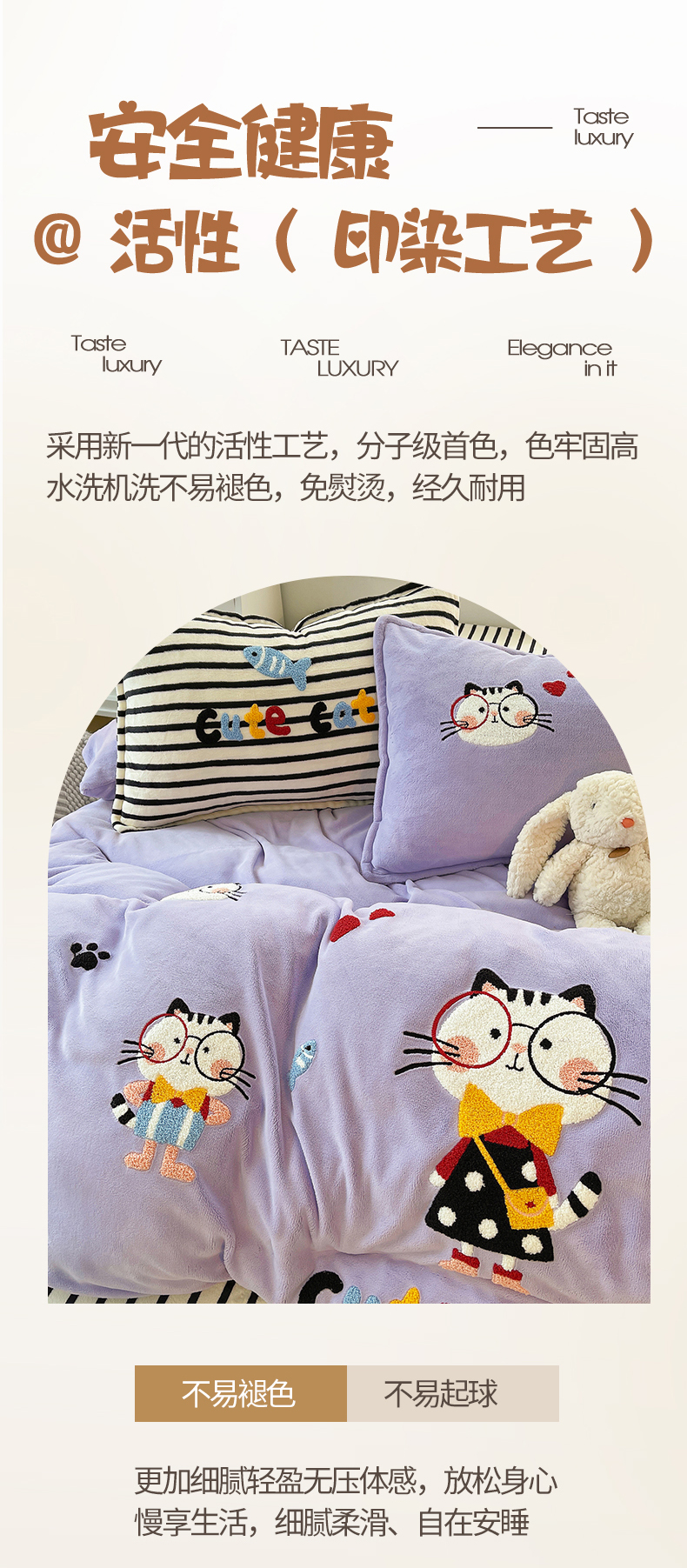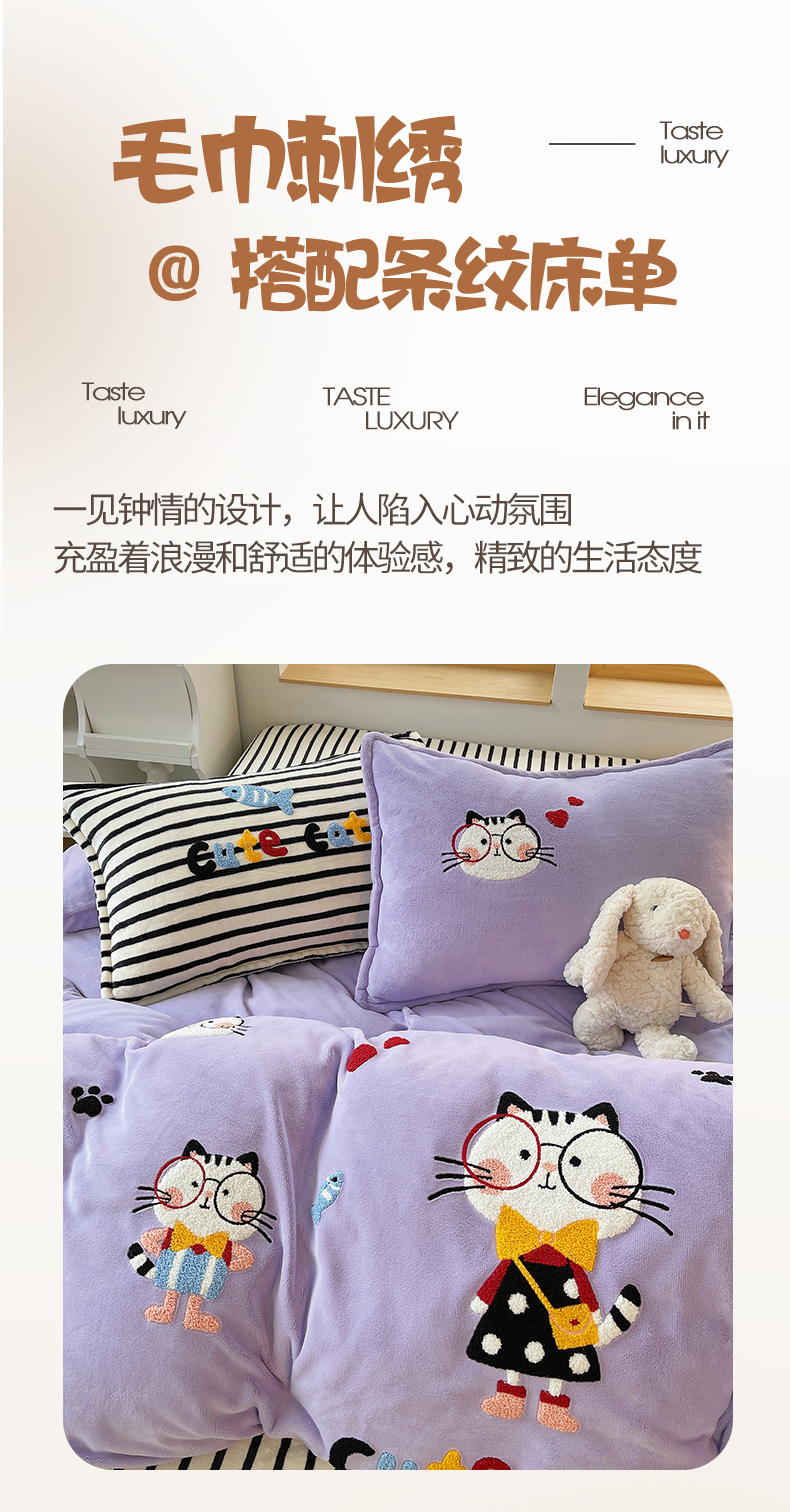 炫拼家纺 2025新款高克重牛奶绒满版毛巾绣卡通加厚四件套-糯米系列 糯米-猫次元