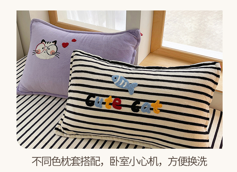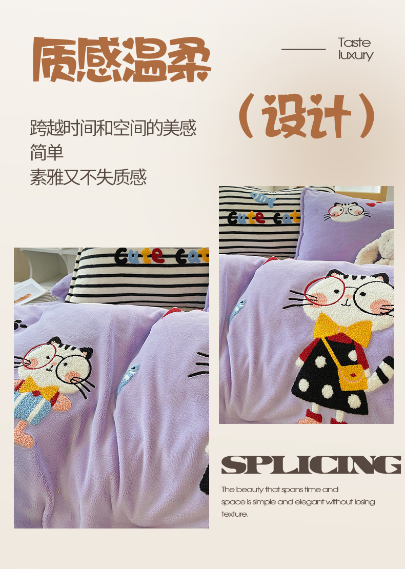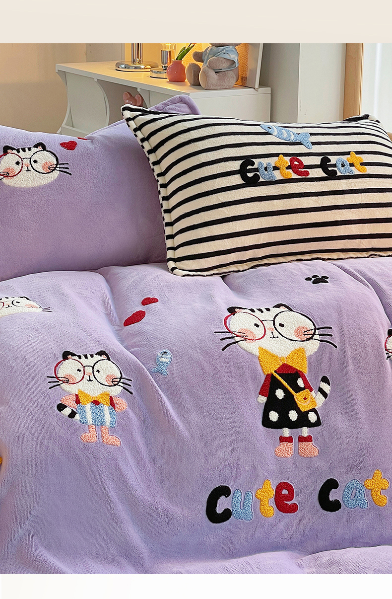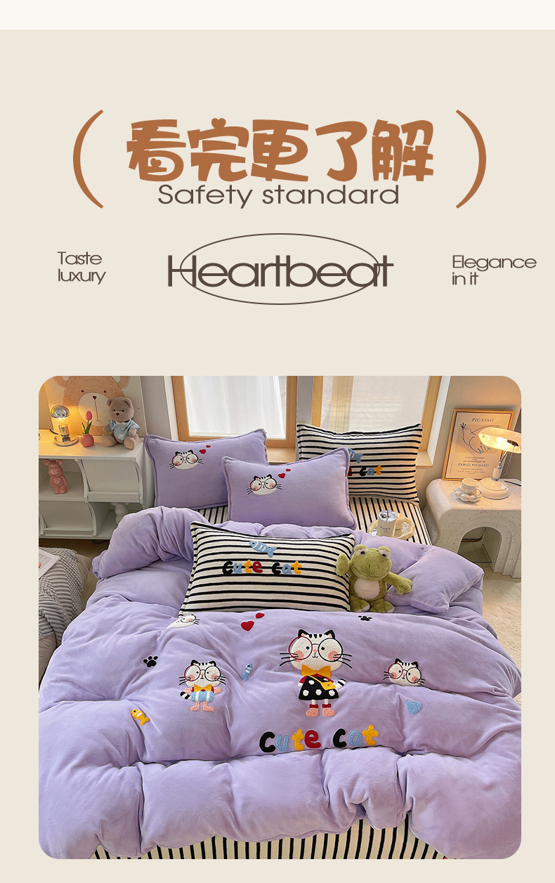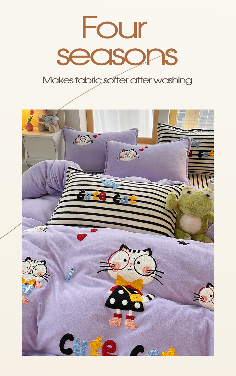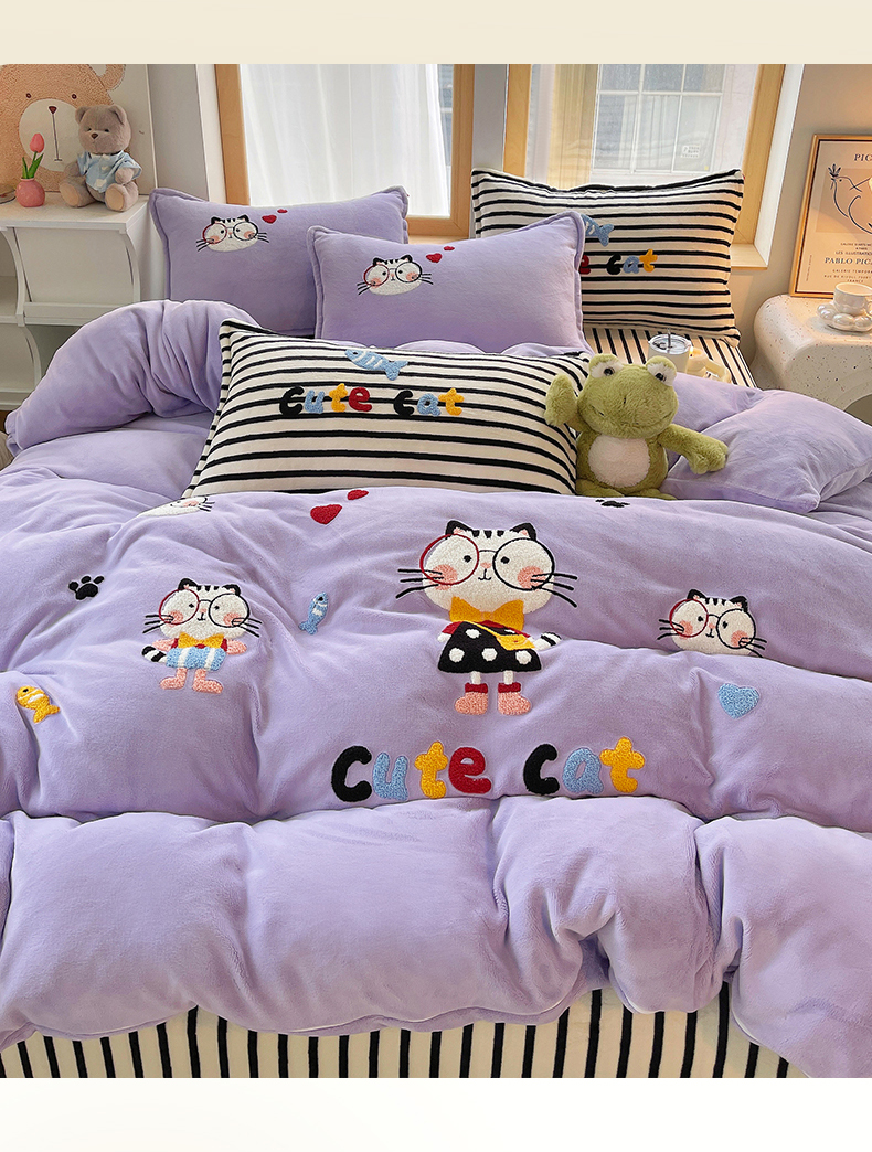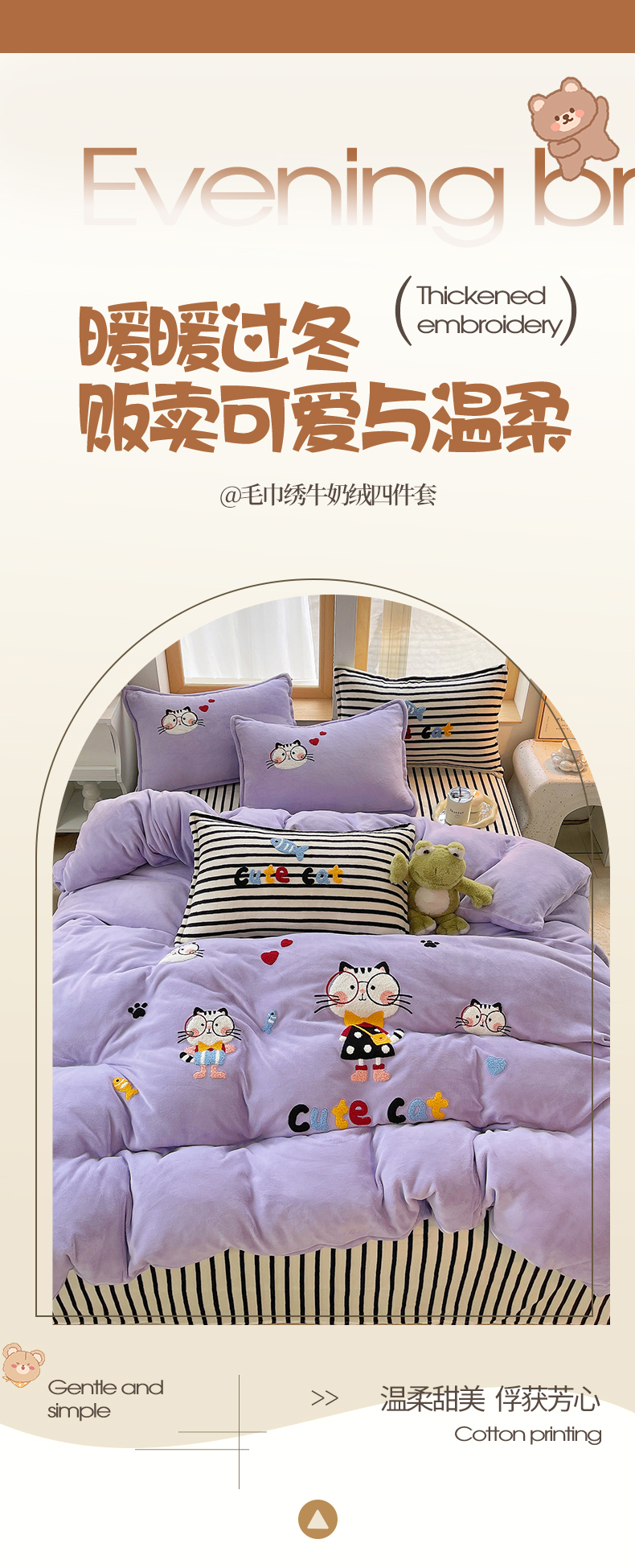 炫拼家纺 2025新款高克重牛奶绒满版毛巾绣卡通加厚四件套-糯米系列 糯米-猫次元