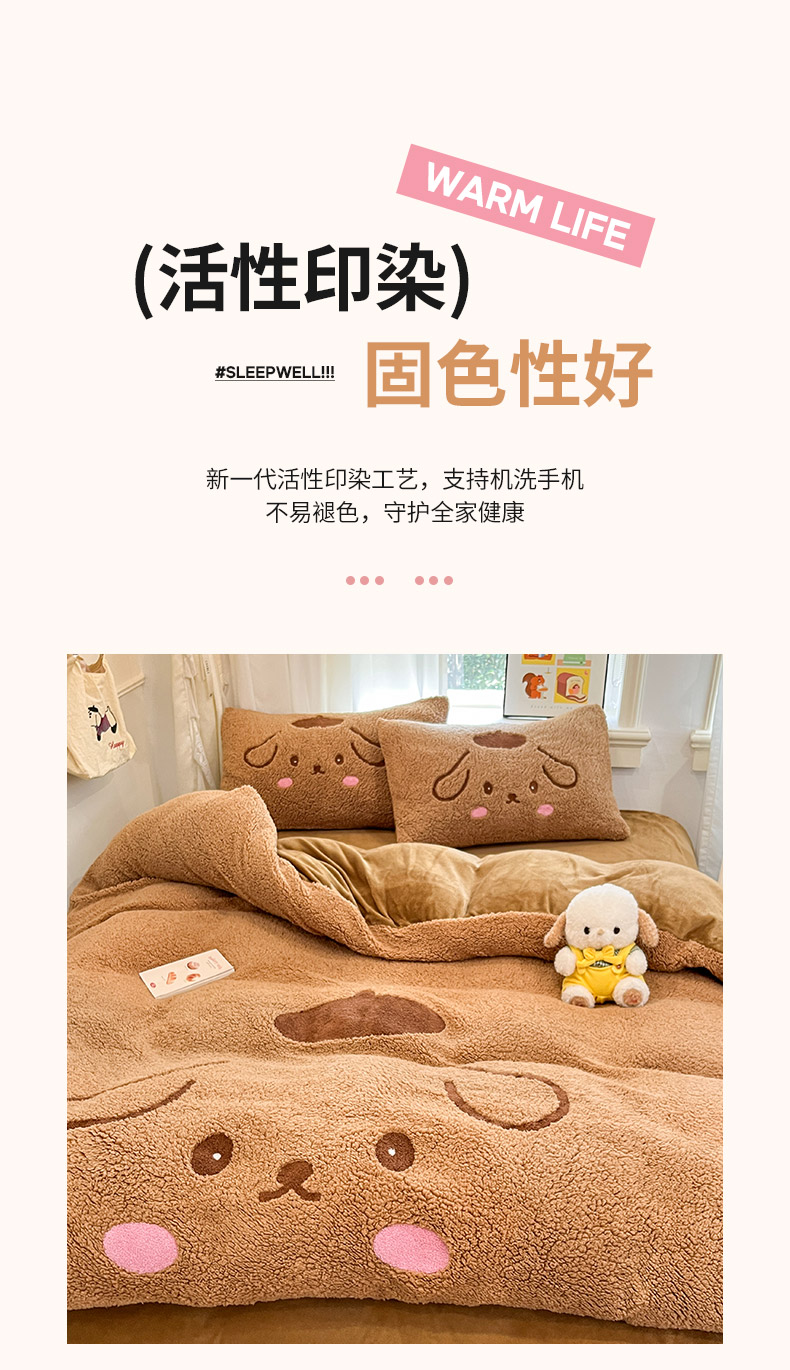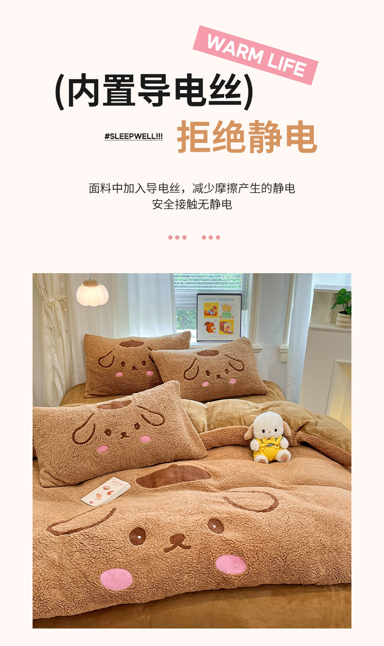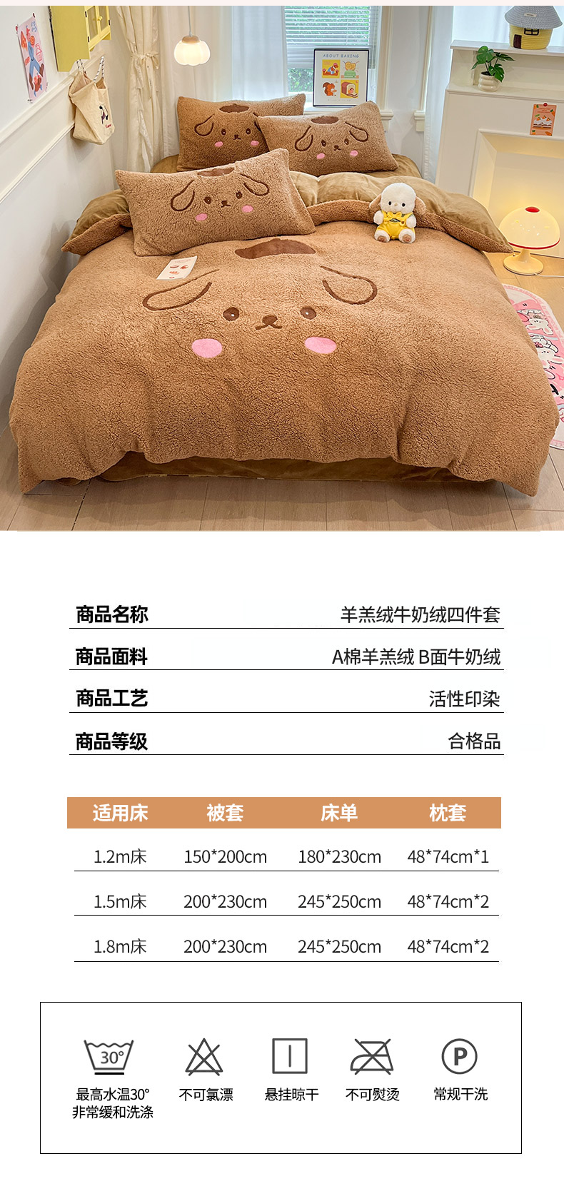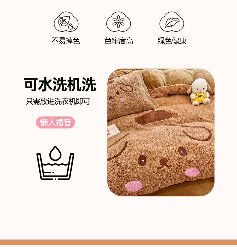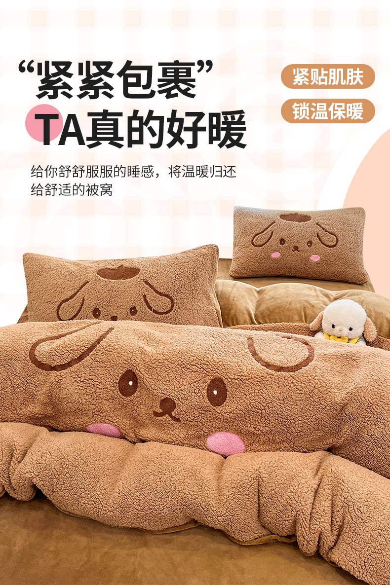商品名称:梓之赫 2025新款大版羊羔绒牛奶绒卡通四件套冬季加厚保暖 晚安狗-咖