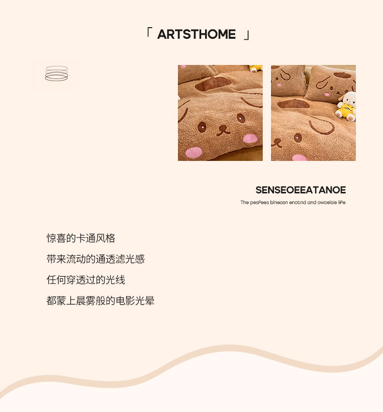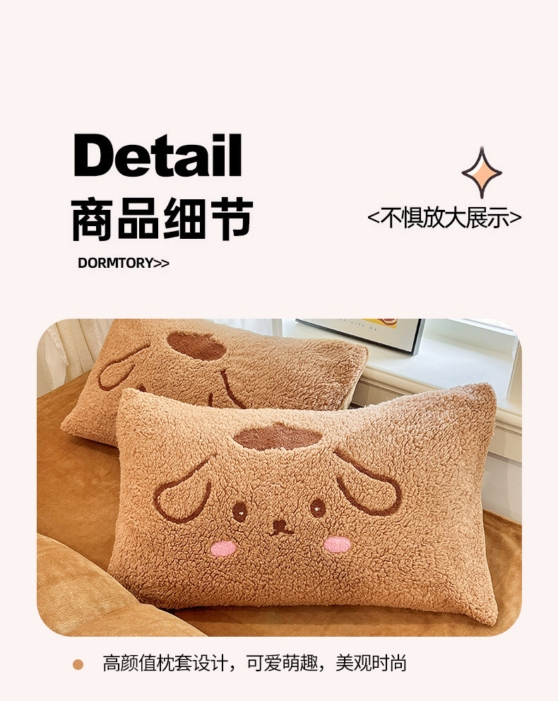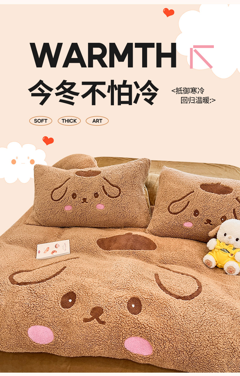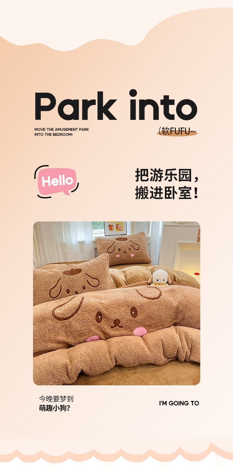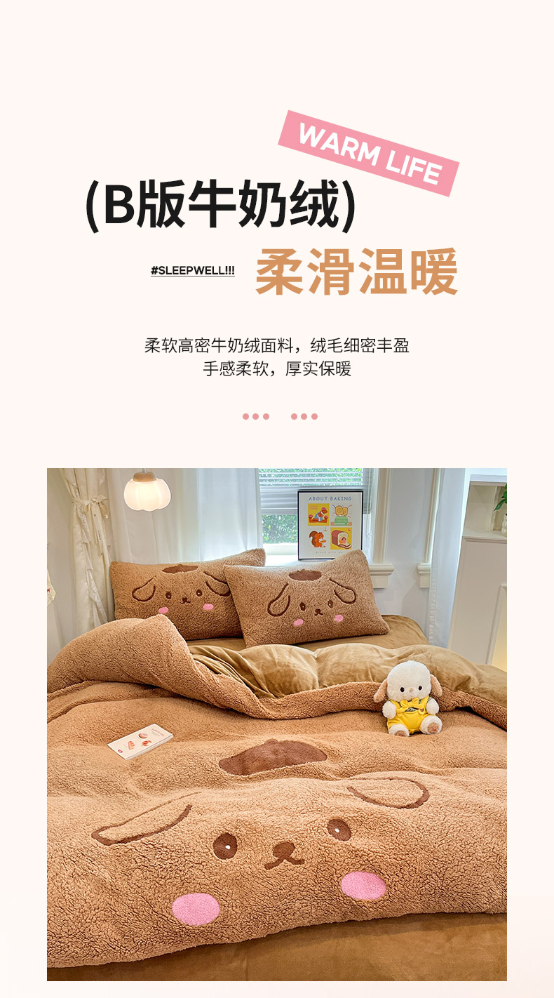 商品名称:梓之赫 2025新款大版羊羔绒牛奶绒卡通四件套冬季加厚保暖 晚安狗-咖