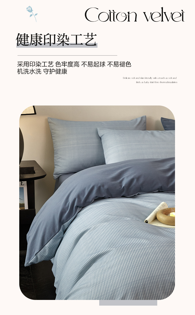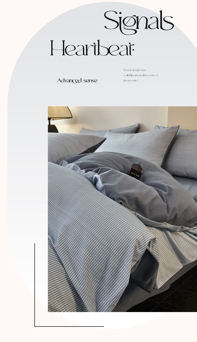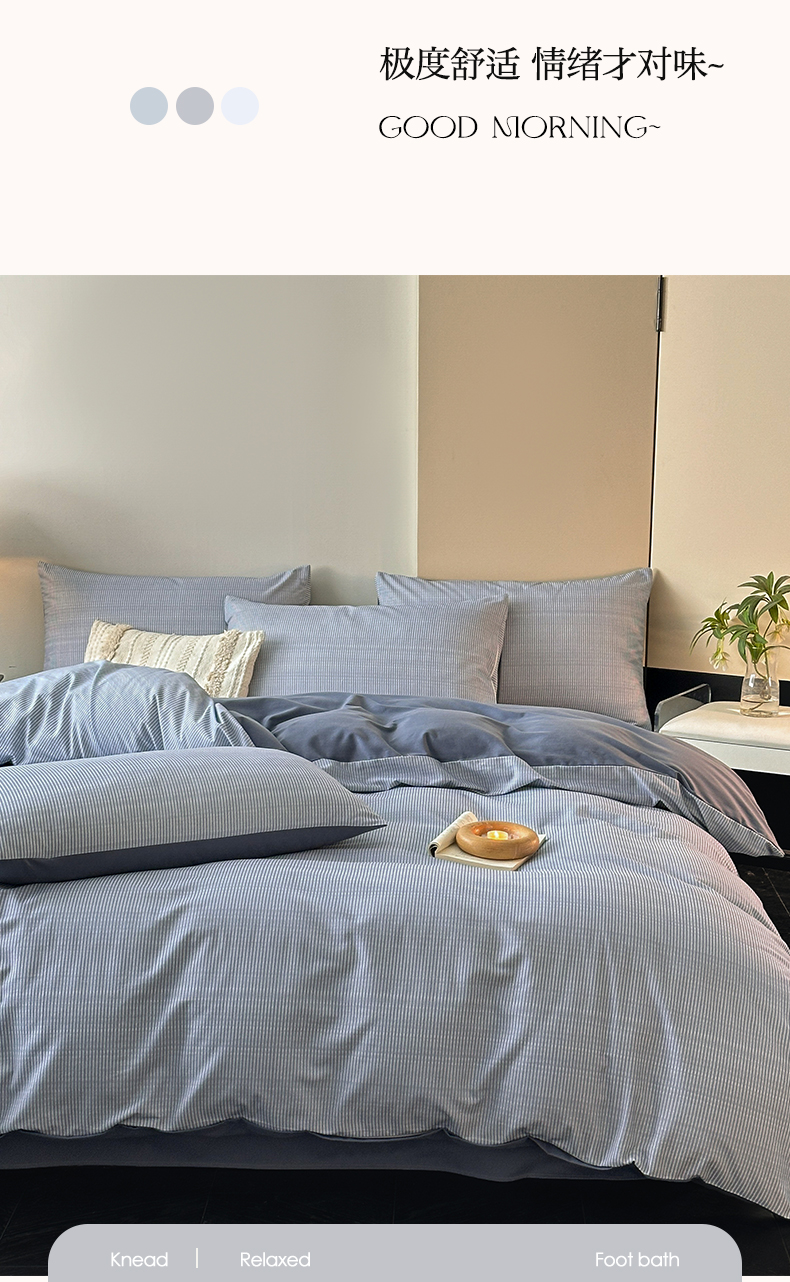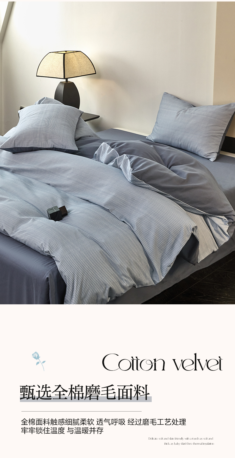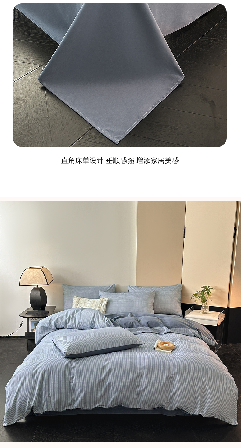 商品名称:雅居纺家纺 2025新款简约款全棉磨毛四件套 宁静-蓝条