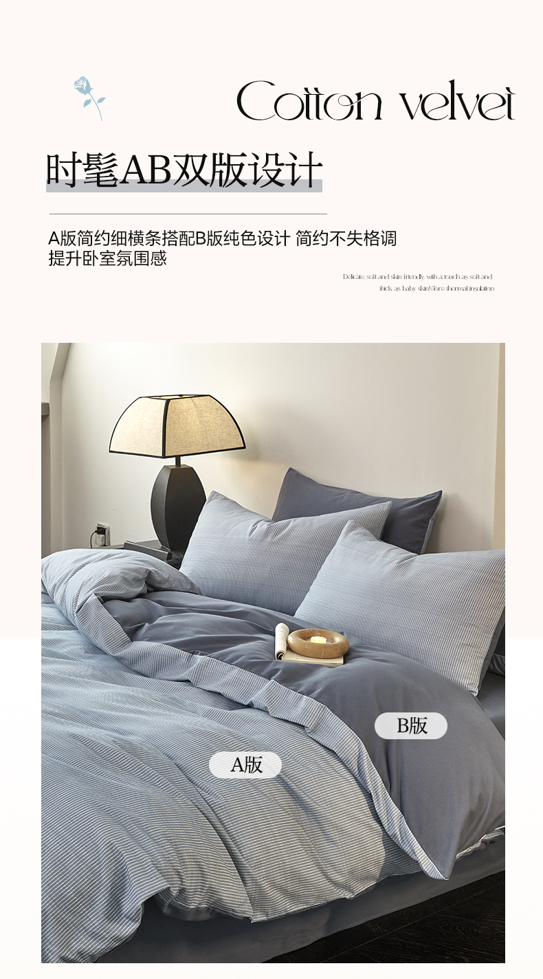 雅居纺家纺 2025新款简约款全棉磨毛四件套 宁静-蓝条