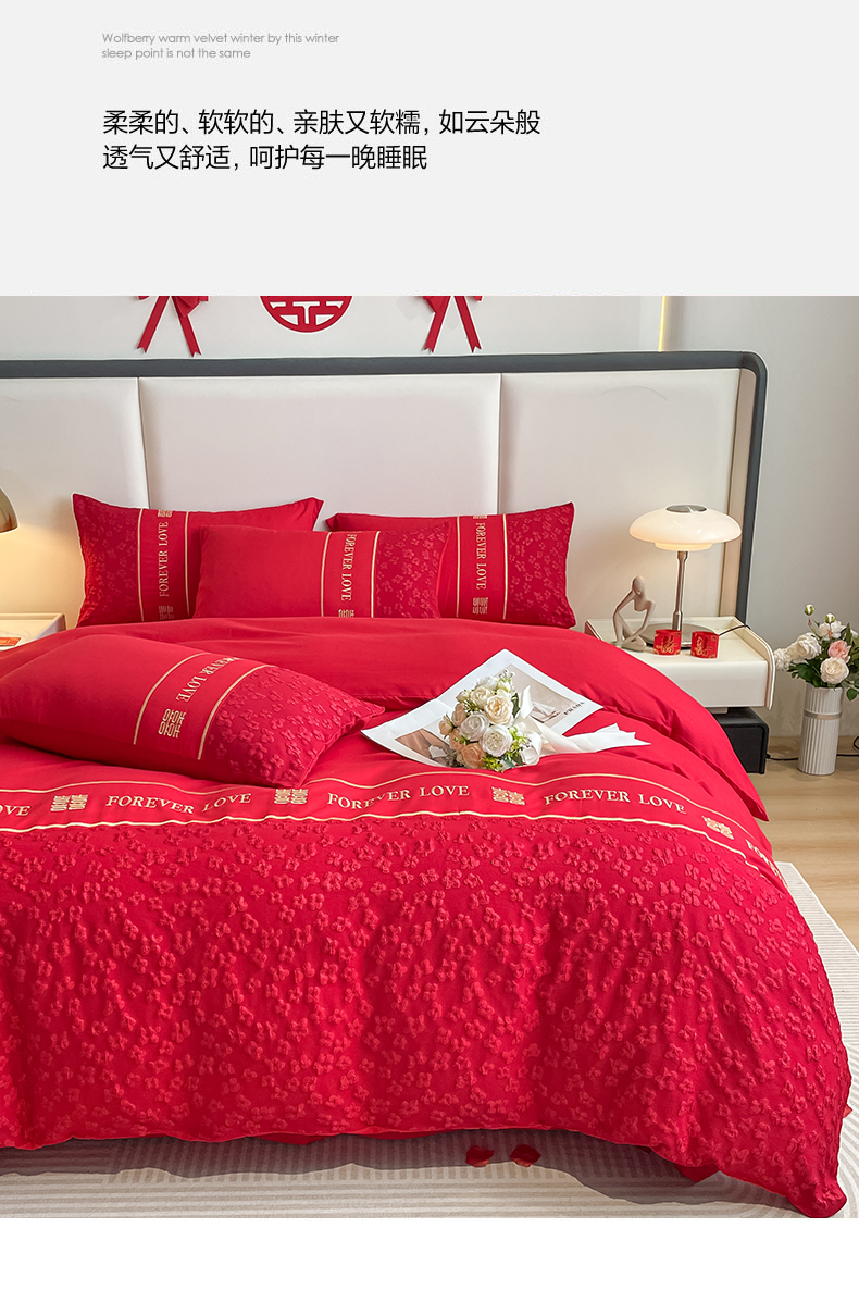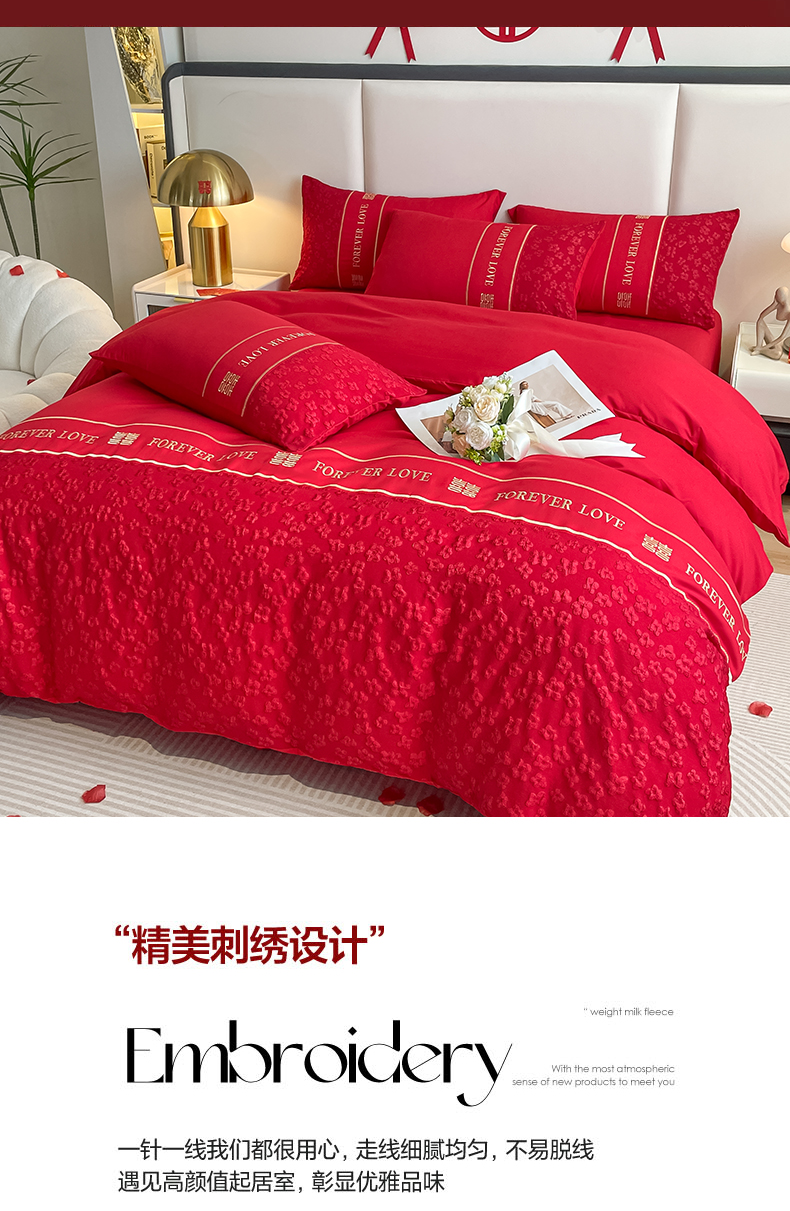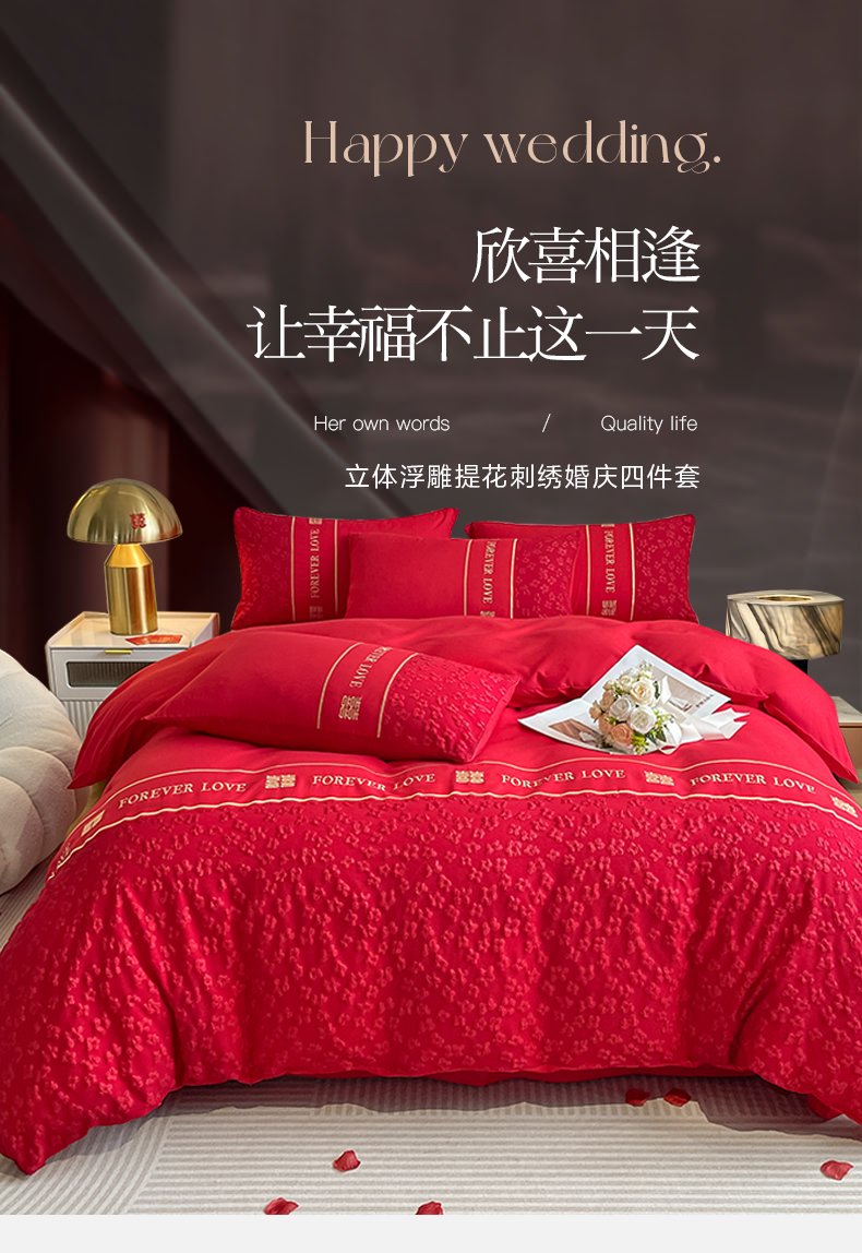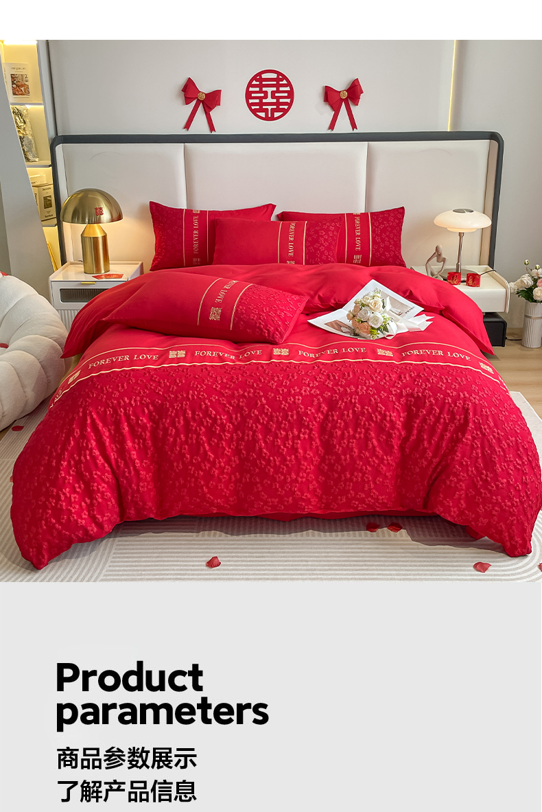 (总)花愿(原花纪) 2026新款婚庆刺绣四件套(礼盒款),浪漫花园-红,浪漫一生,龙凤呈祥,满心欢喜,天赐良缘,喜气洋洋,祥瑞,喜结良缘