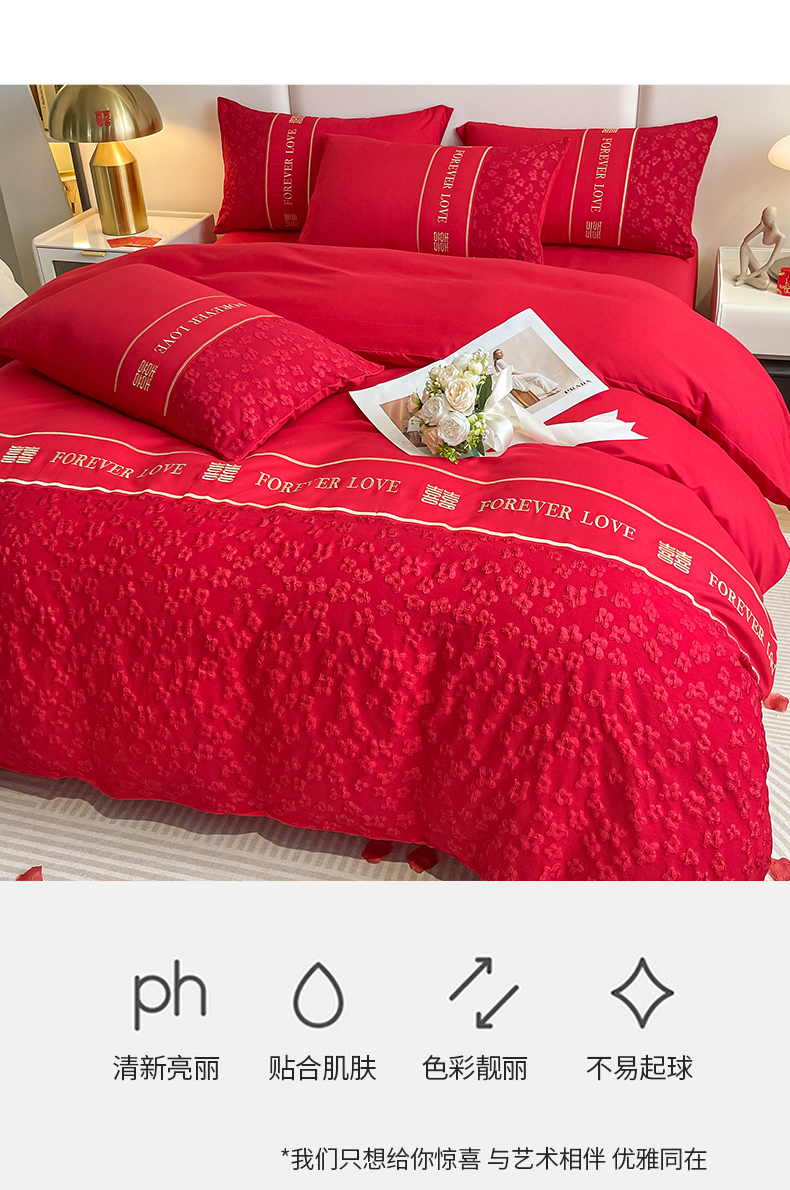 商品名称:花愿(原花纪) 2026新款婚庆刺绣四件套(礼盒款) 浪漫花园-红