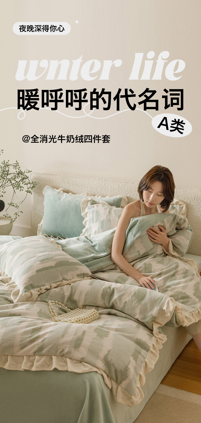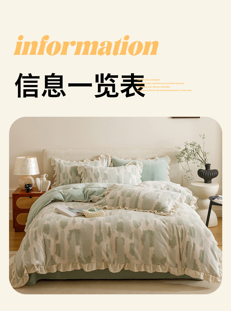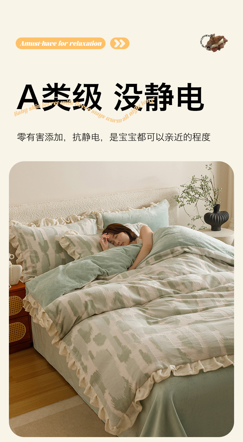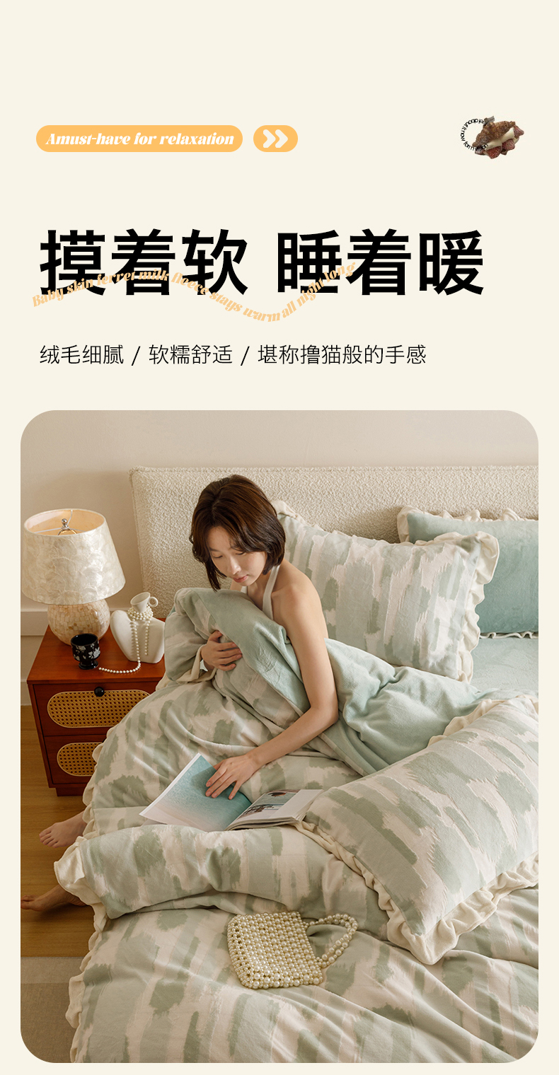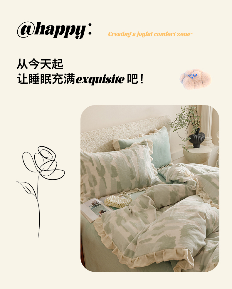 当前位置: 91家纺网 > 商品网购 > 床品套件 > 四件套 > 牛奶绒四件套 > 恬思语家纺 2025新款亲肤舒适韩风小清新花边牛奶绒四件套 奇想-绿