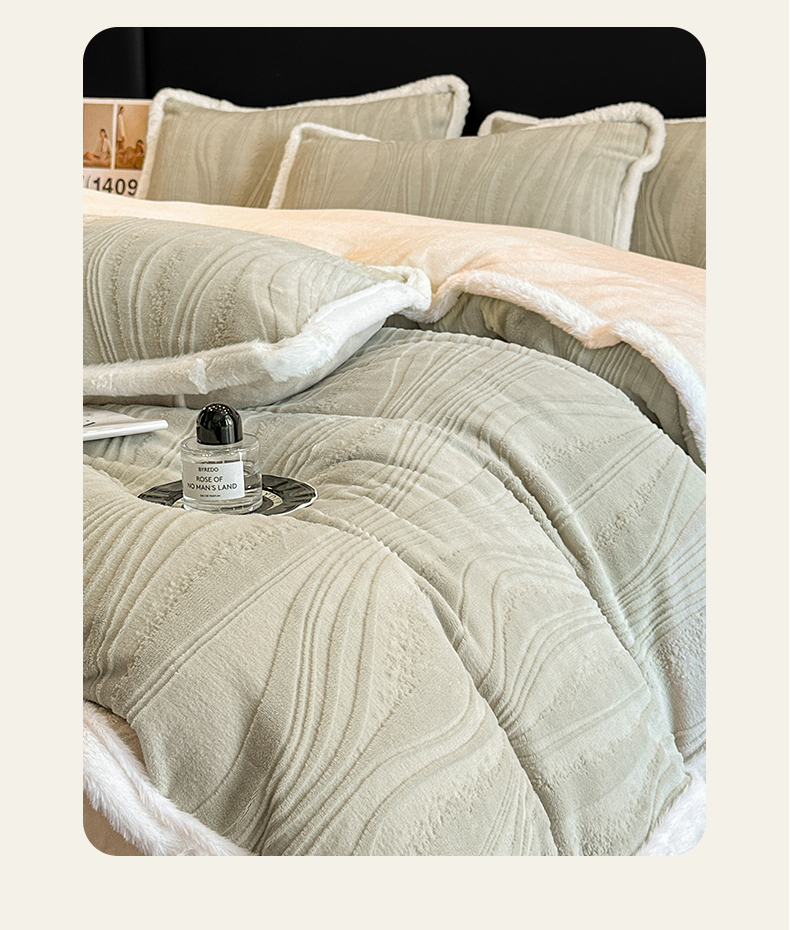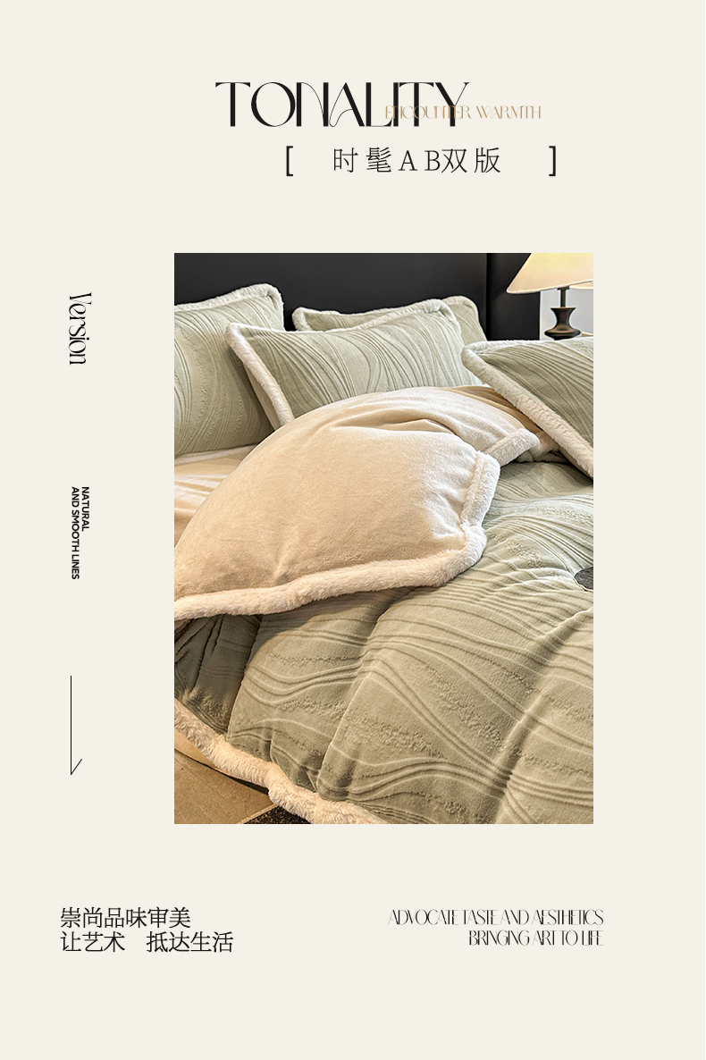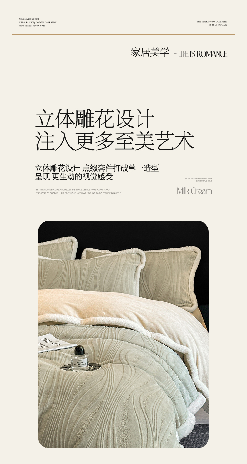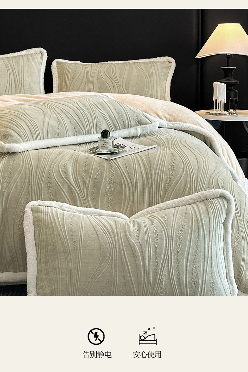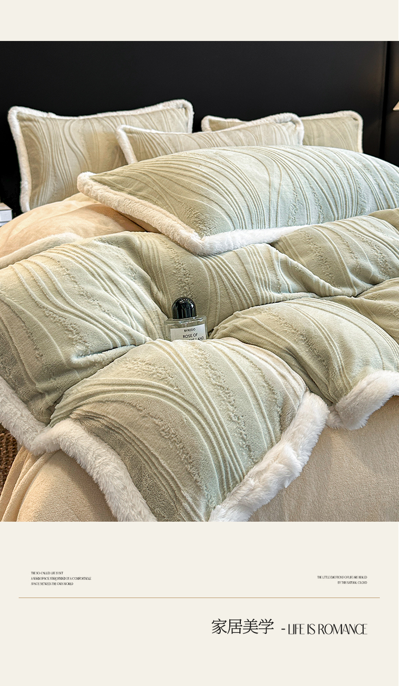 商品名称:涵宸家纺 2025新款雕花牛奶绒四件套 拾光-绿