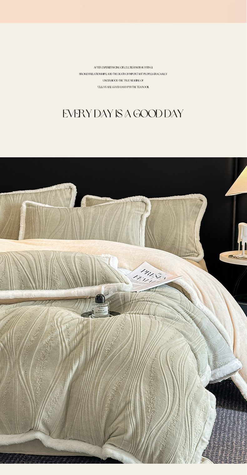 涵宸家纺 2025新款雕花牛奶绒四件套 拾光-绿
