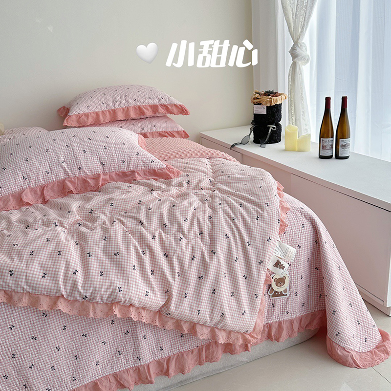 佰织鑫家居 2025秋冬新品全棉法式床盖款豆豆被四件套 星星月亮