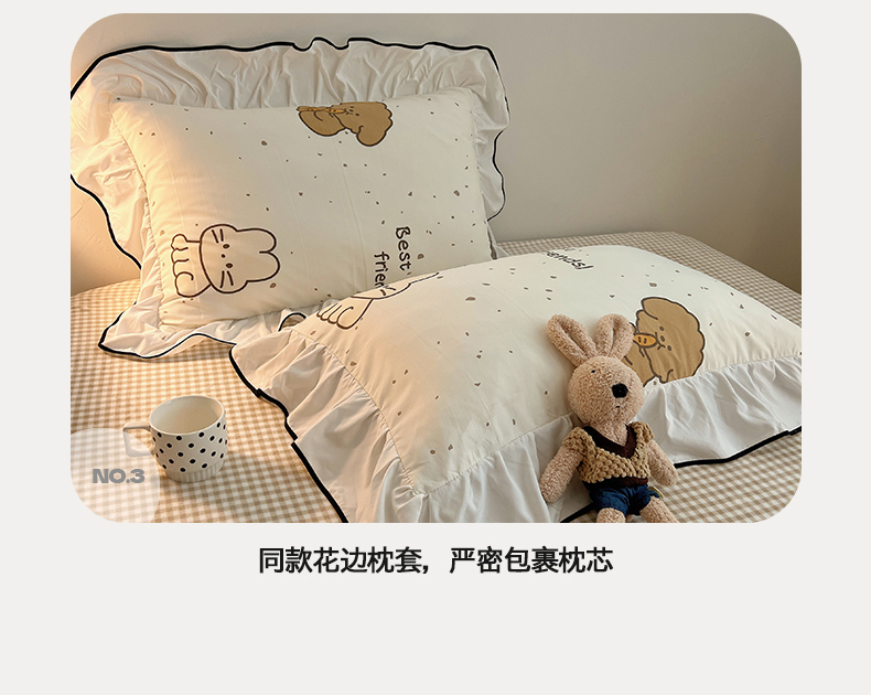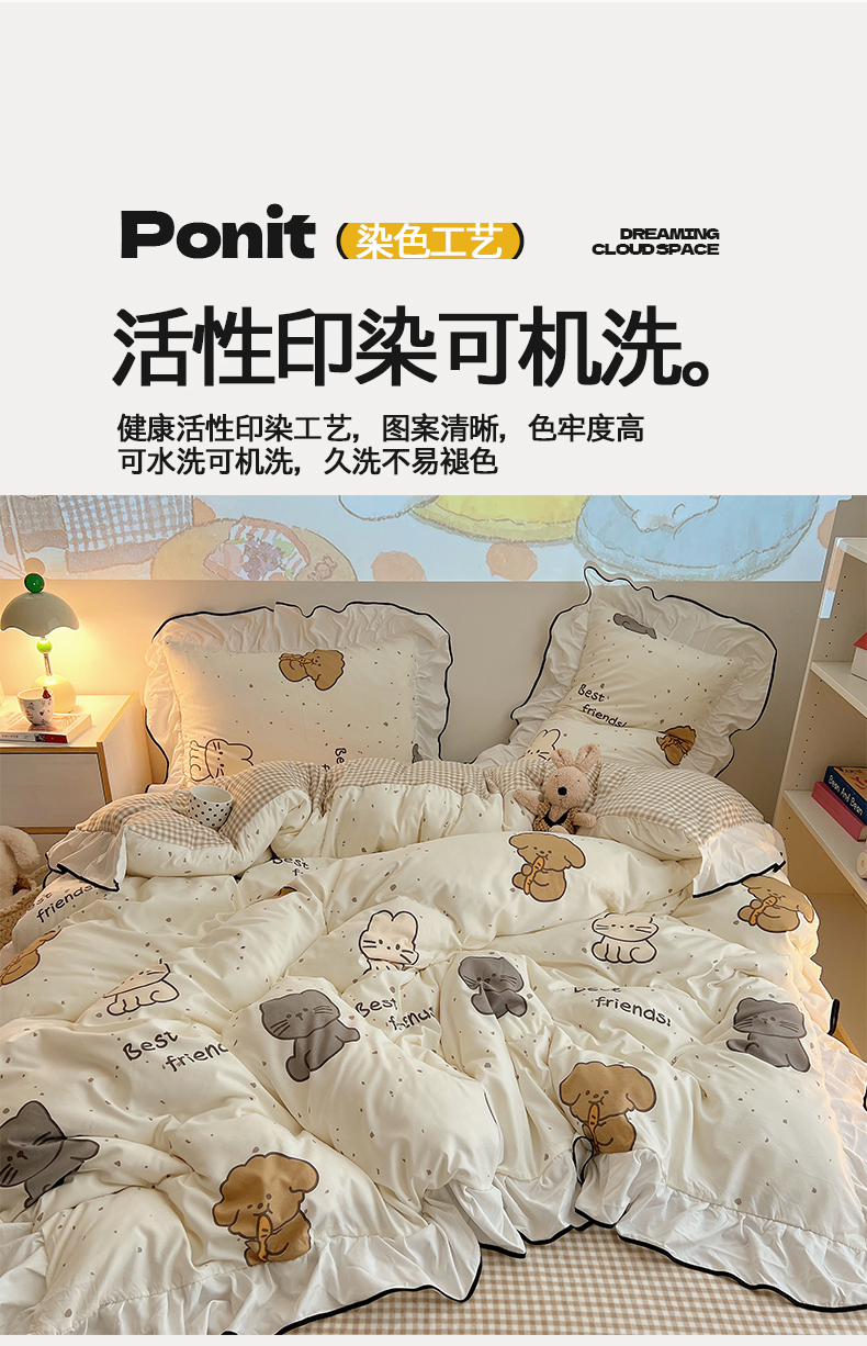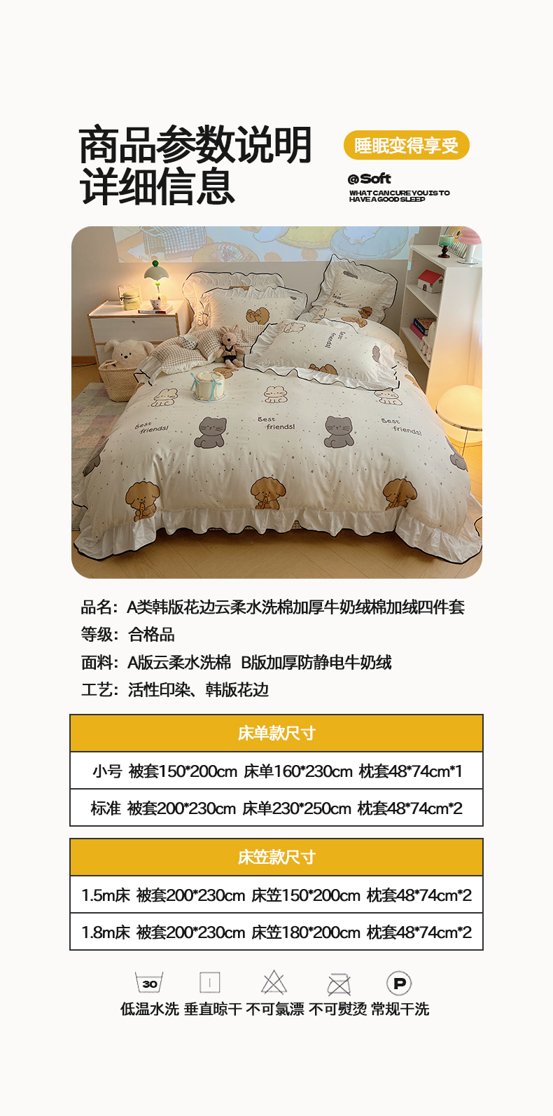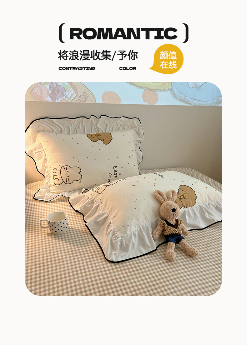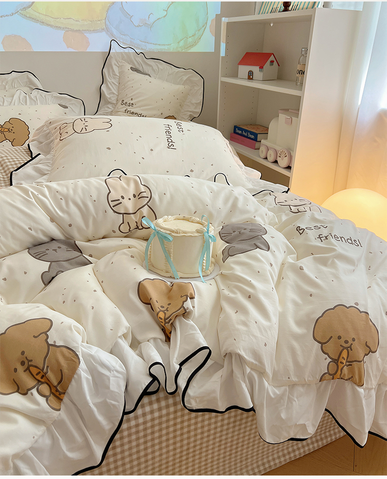 当前位置: 91家纺网 > 商品网购 > 床品套件 > 四件套 > 牛奶绒四件套 > 桃心家居 2025新款A类韩版花边撞色云柔水洗棉加厚牛奶绒少女猫咪棉绒四件套系列 绒花边-快乐时光