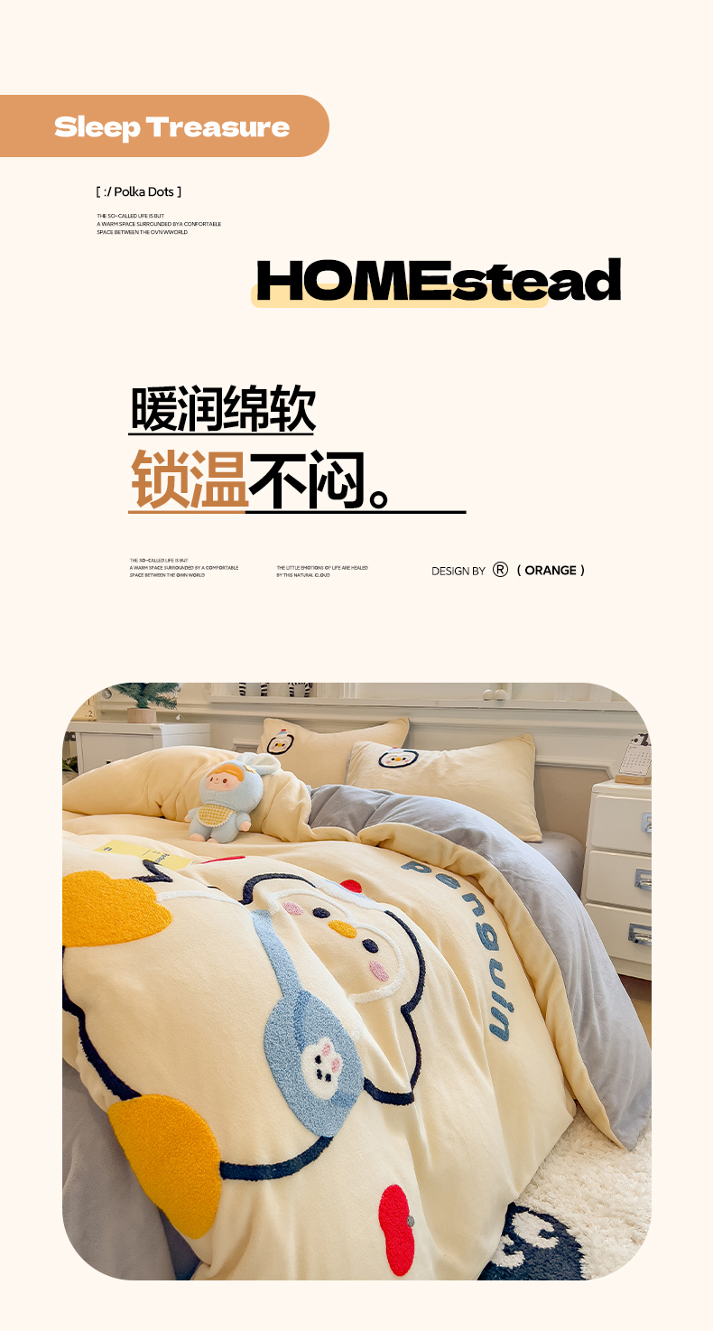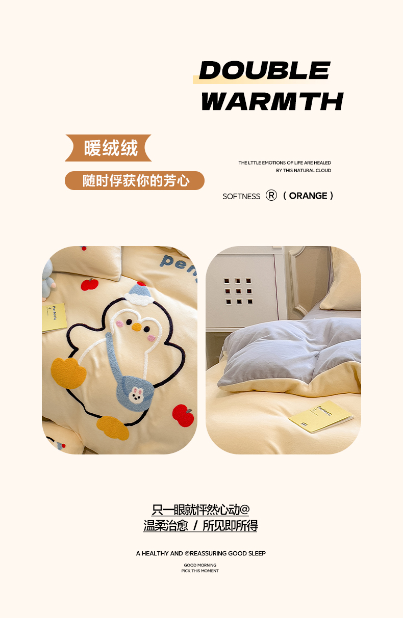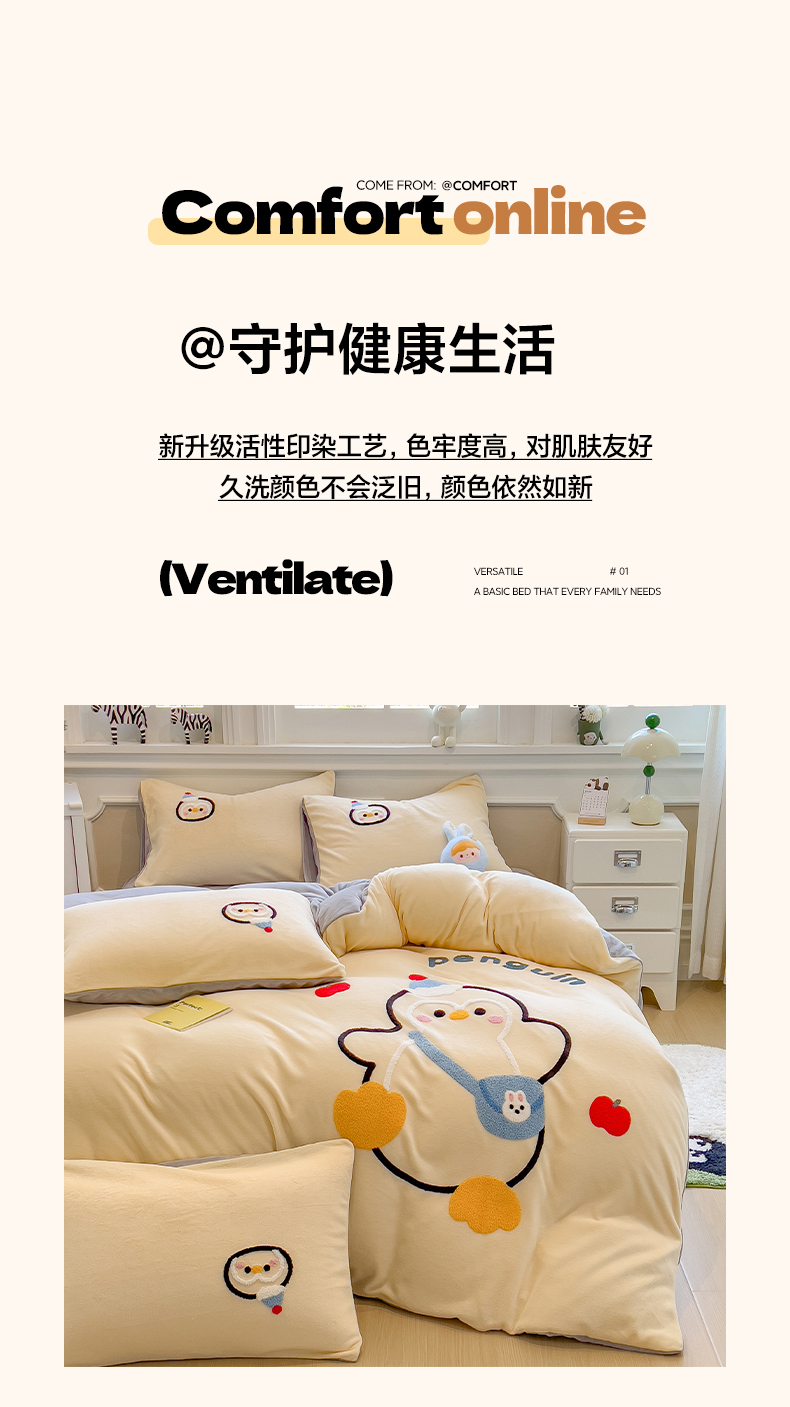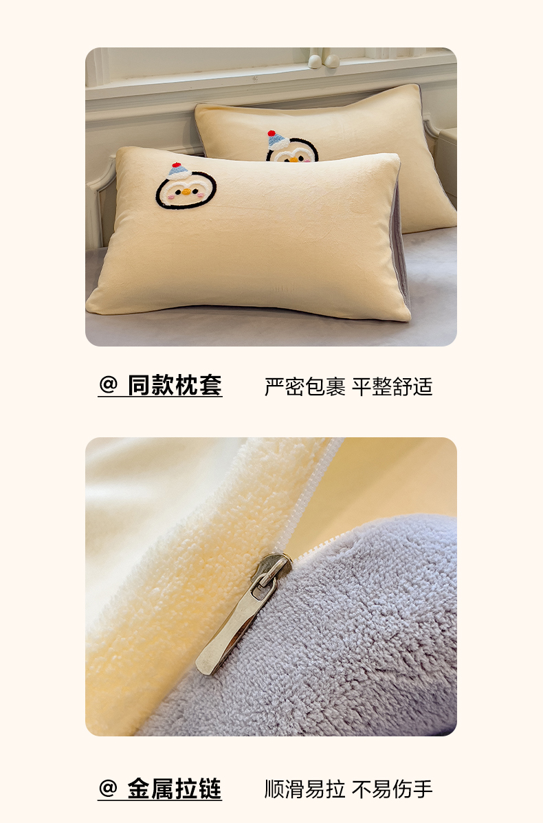当前位置: 91家纺网 > 商品网购 > 床品套件 > 四件套 > 牛奶绒四件套 > 悦织语 2025新款加厚200克高克重毛巾绣牛奶绒四件套 快乐企鹅-奶黄