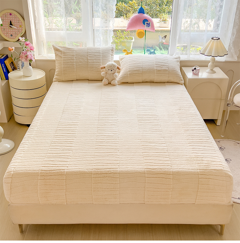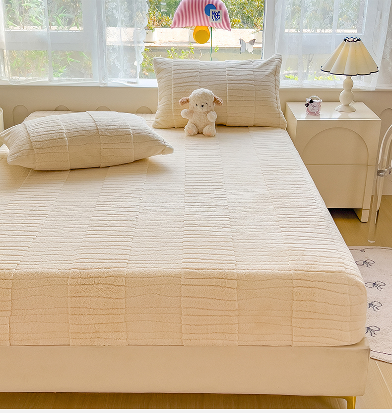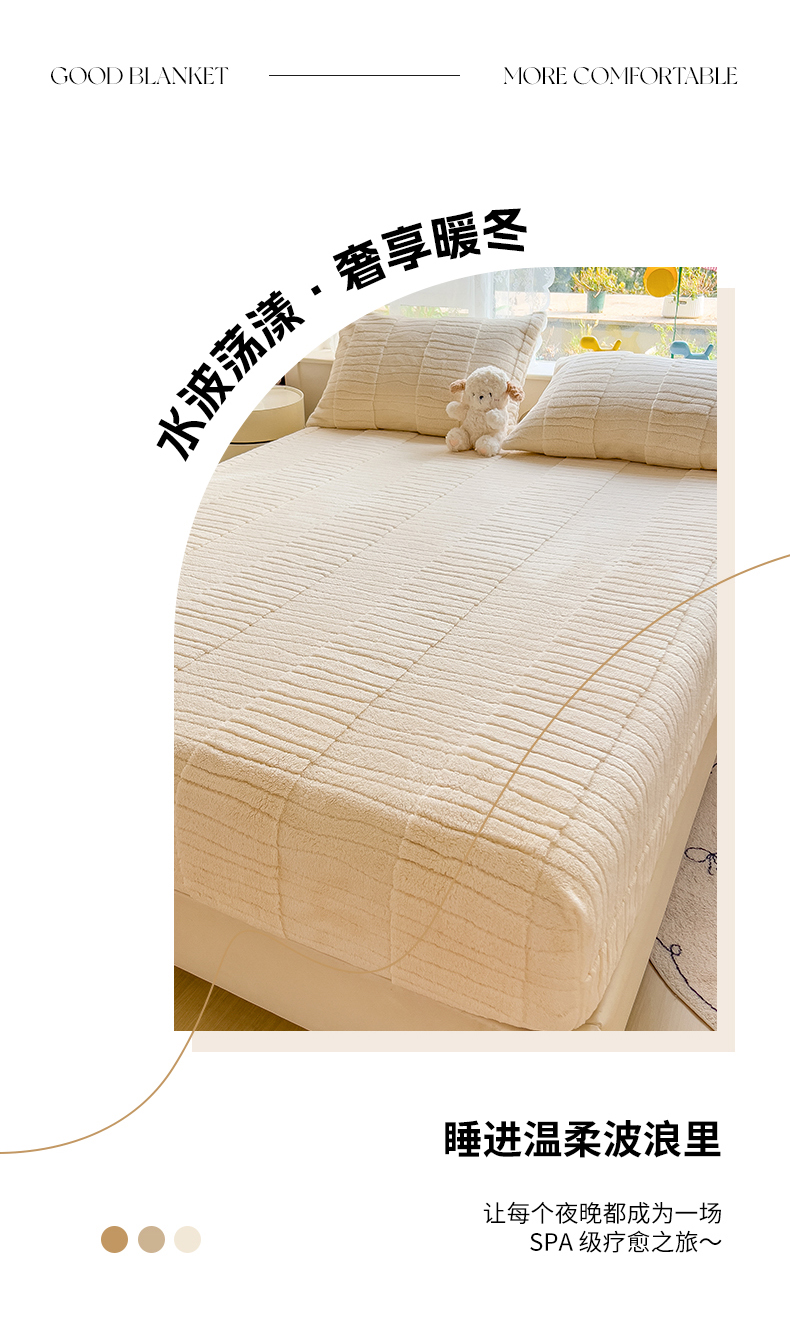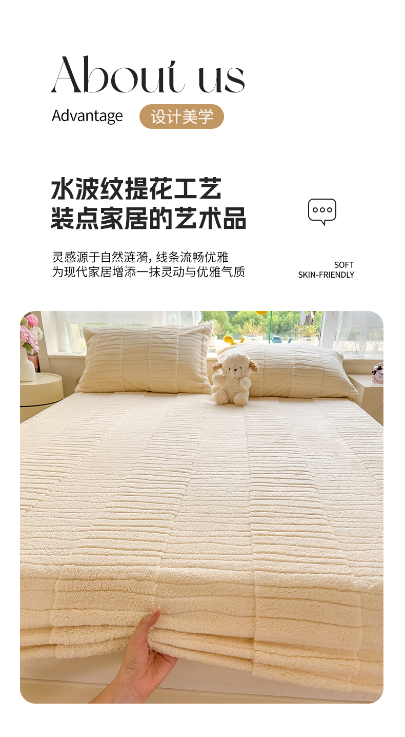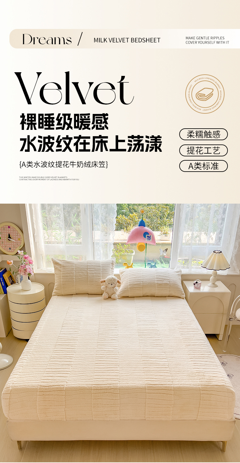 商品名称:世纪绒品 2025新款A类水波纹提花牛奶绒床笠 水波纹-米白