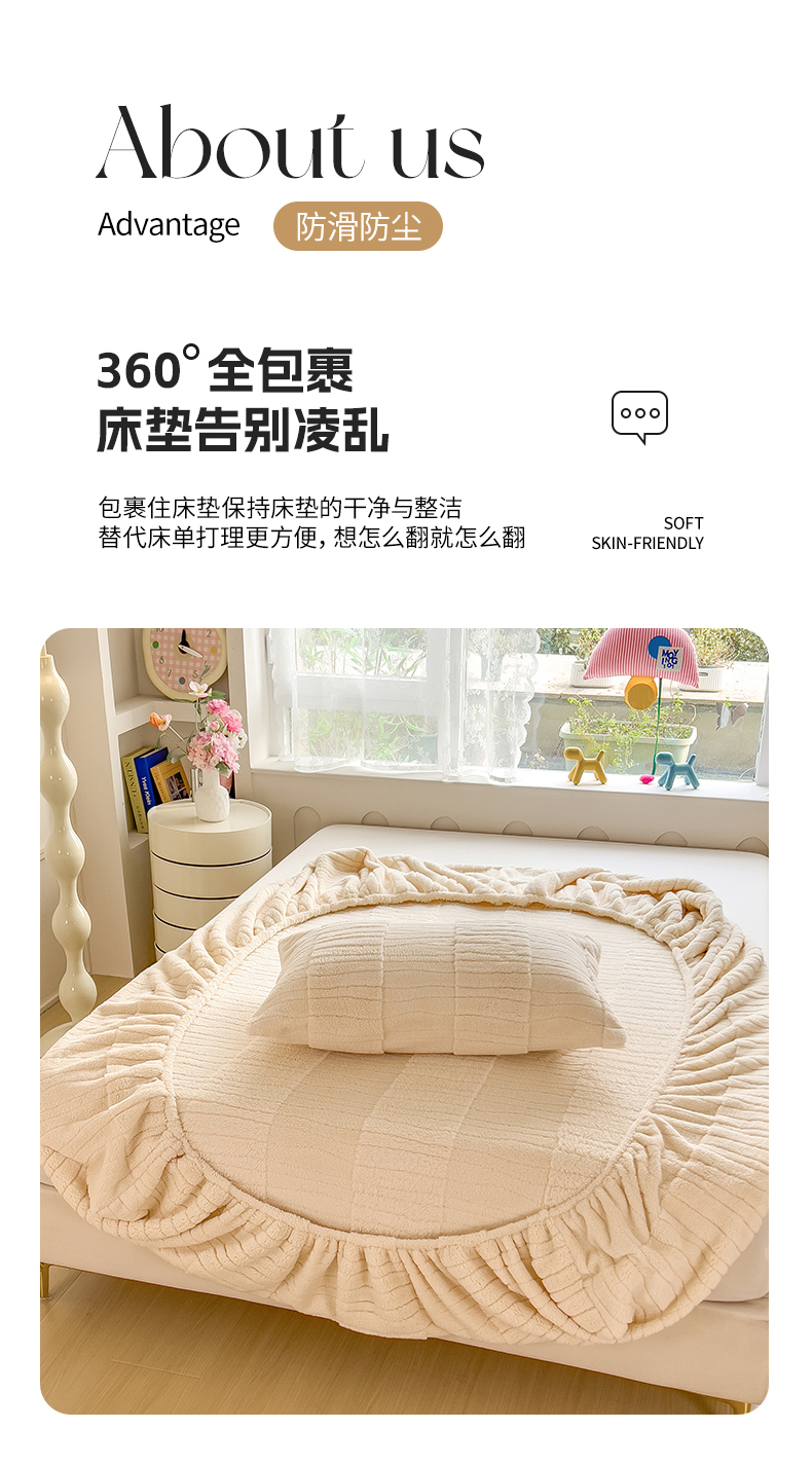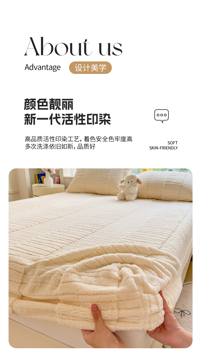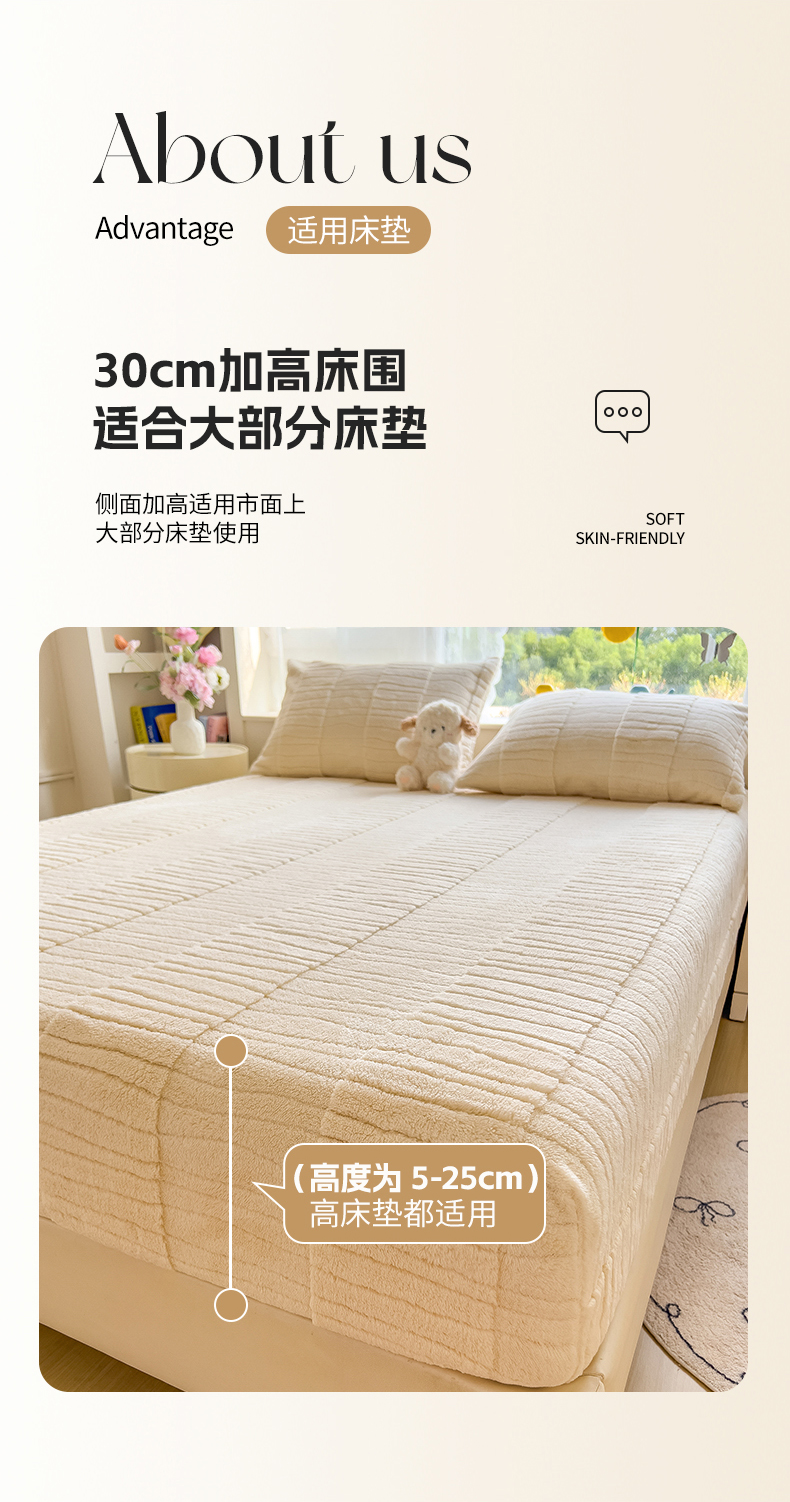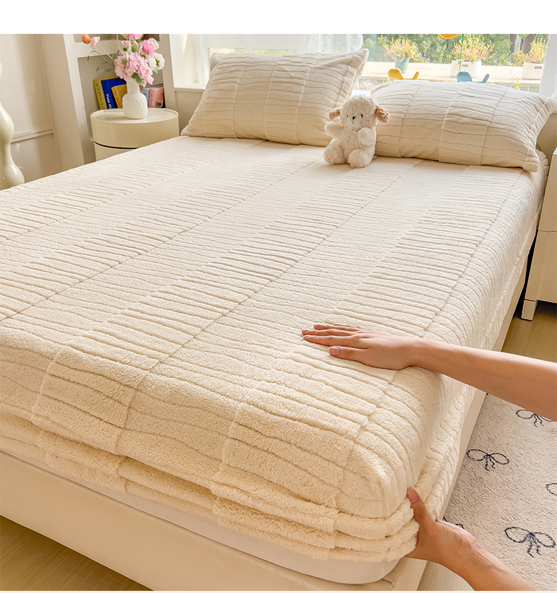 商品名称:世纪绒品 2025新款A类水波纹提花牛奶绒床笠 水波纹-米白