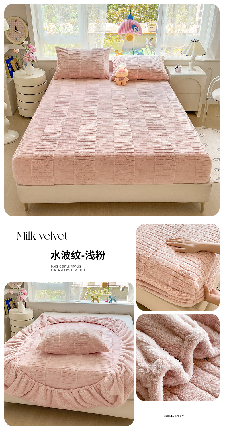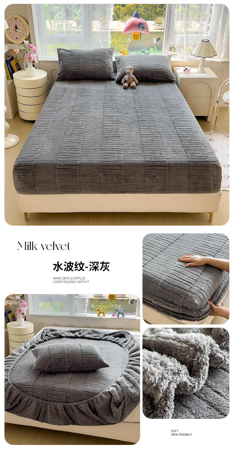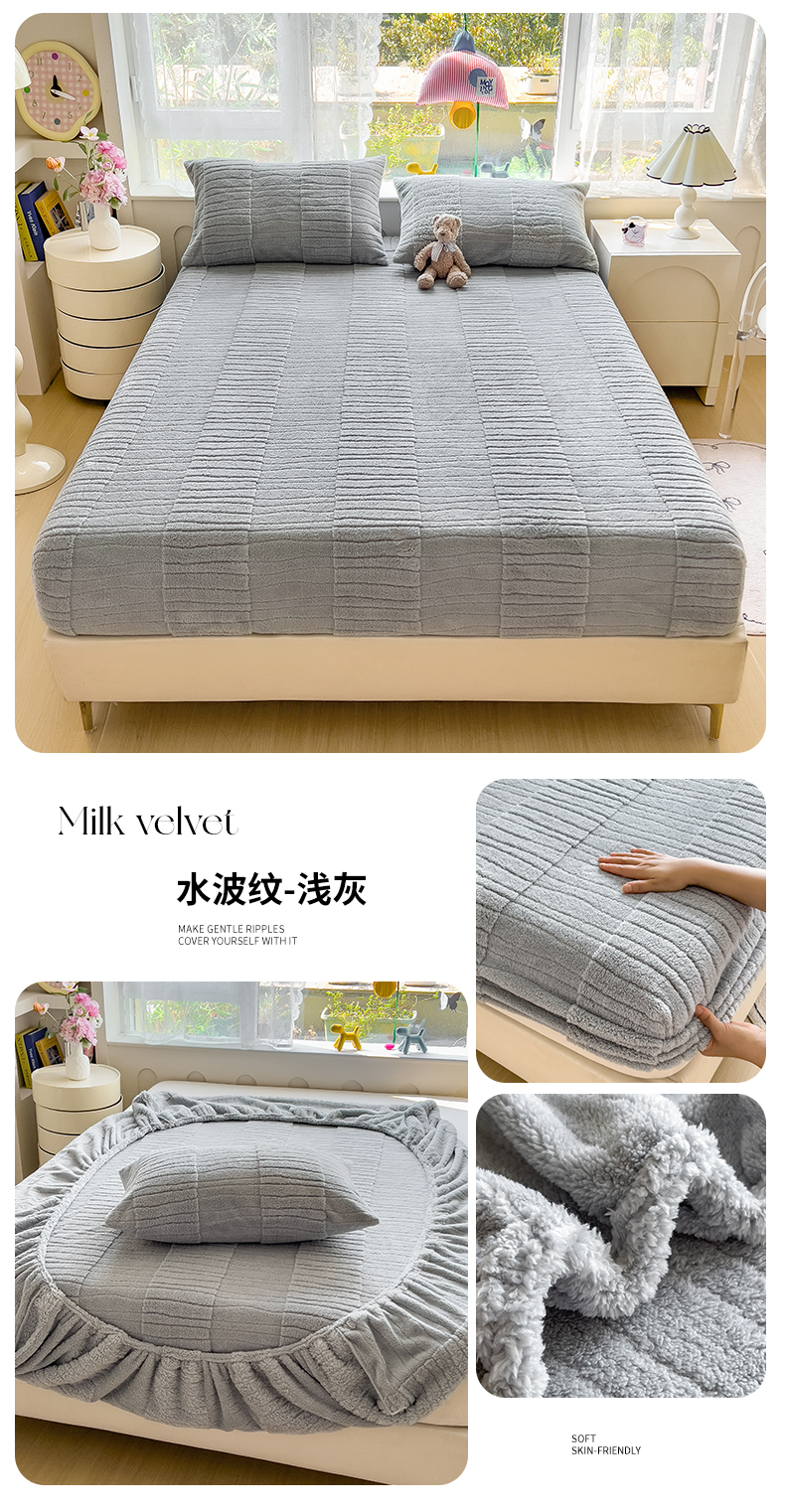 (总)世纪绒品 2025新款A类水波纹提花牛奶绒床笠,水波纹-浅卡,水波纹-蓝灰,水波纹-米白,水波纹-浅粉,水波纹-浅灰,水波纹-深灰