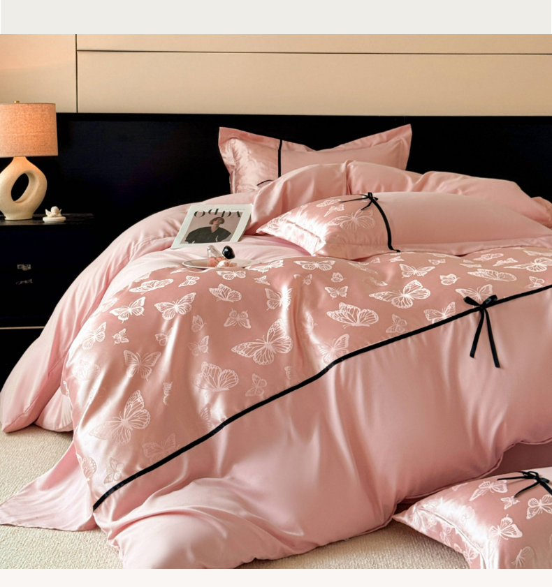 (总)千希家纺 2025新款麻绳拼接120g斜纹磨毛提花婚庆系列四件套,蝶恋花,竹恋,竹影清梦