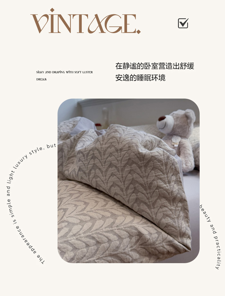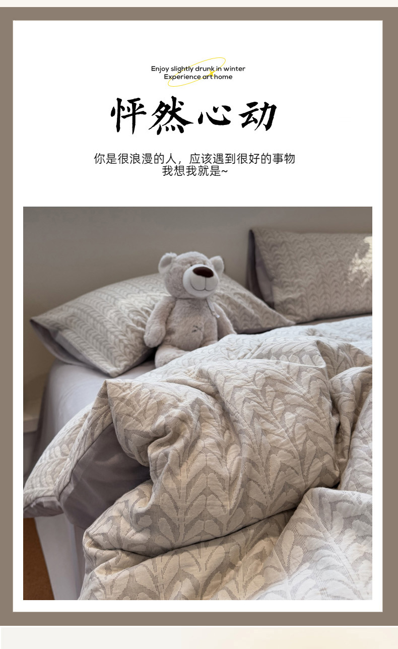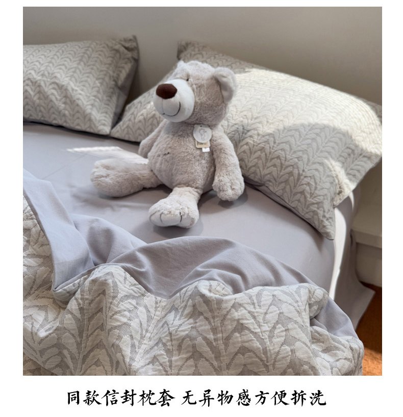 (总)慕尚家纺 2025新款磨毛提花双层纱四件套,慕叶粉,慕叶灰,清雅灰,清雅咖,清雅绿,森木粉,森木灰,森木绿,叶韵灰,叶韵咖,叶韵绿