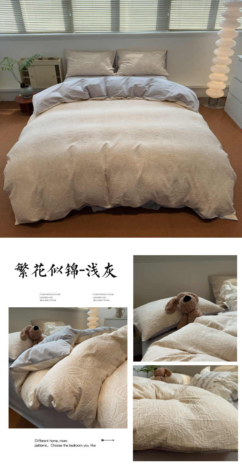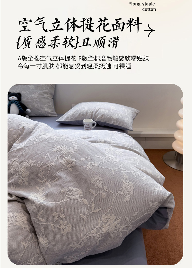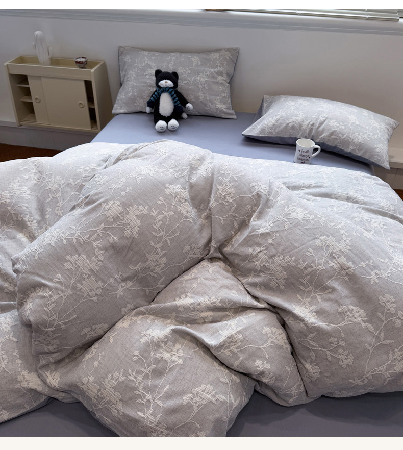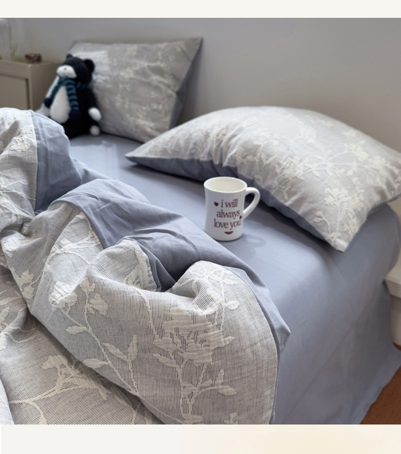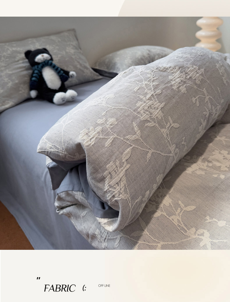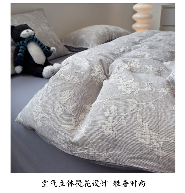 当前位置: 91家纺网 > 商品网购 > 床品套件 > 四件套 > 普通磨毛四件套 > 慕尚家纺 2025新款全棉空气立体提花磨毛四件套 烟花-灰蓝