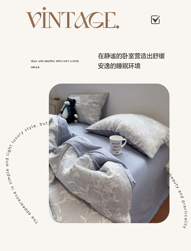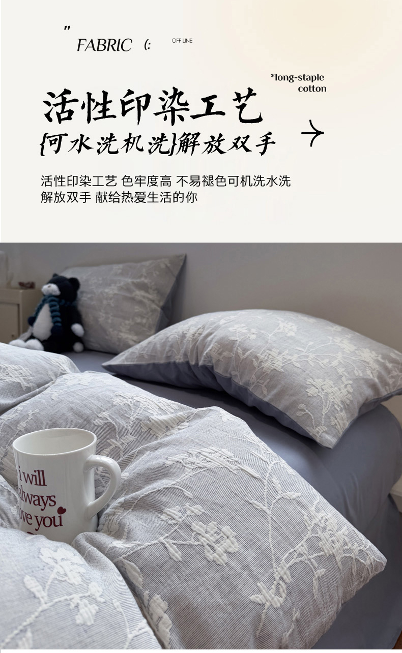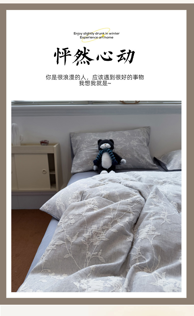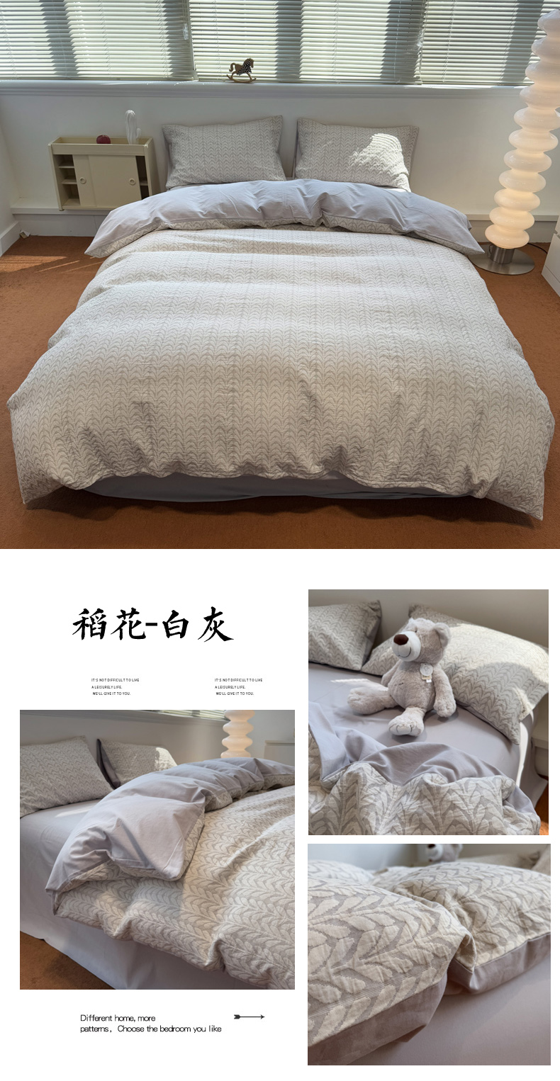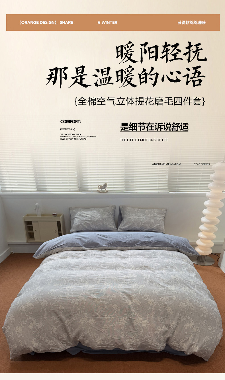 当前位置: 91家纺网 > 商品网购 > 床品套件 > 四件套 > 普通磨毛四件套 > 慕尚家纺 2025新款全棉空气立体提花磨毛四件套 烟花-灰蓝