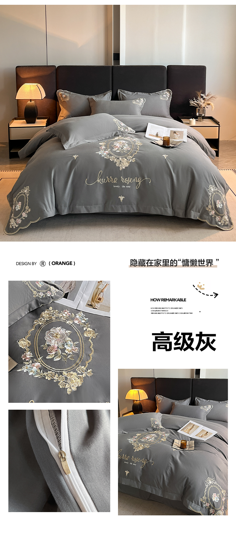 (总)博纳家纺 2025新款亲服棉宽边高级简奢款绣花四件套-盛世年华,宾利蓝,繁星蓝,粉玉,高级灰,香槟
