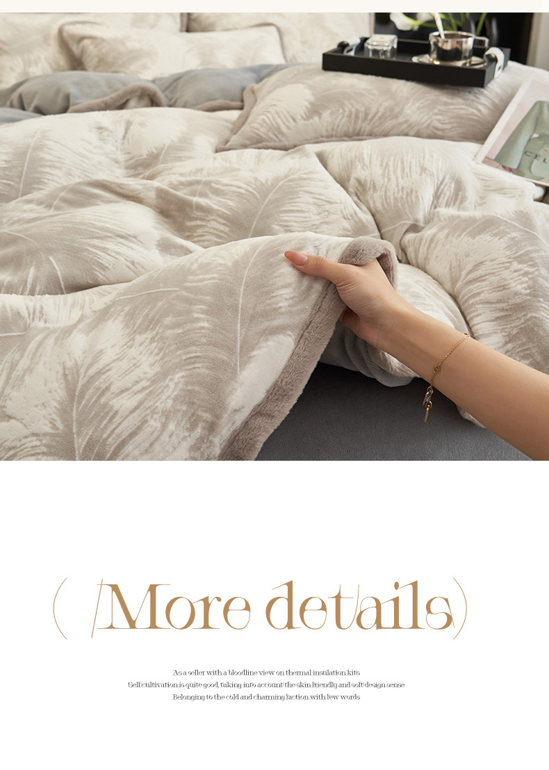 商品名称:金鹰 2025新款烂花兔毛包边四件套牛奶绒四件套提花套件 羽毛