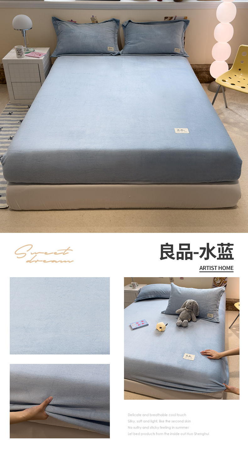 857家居 2025新款高克重牛奶绒床单床笠系列 良品-深蓝