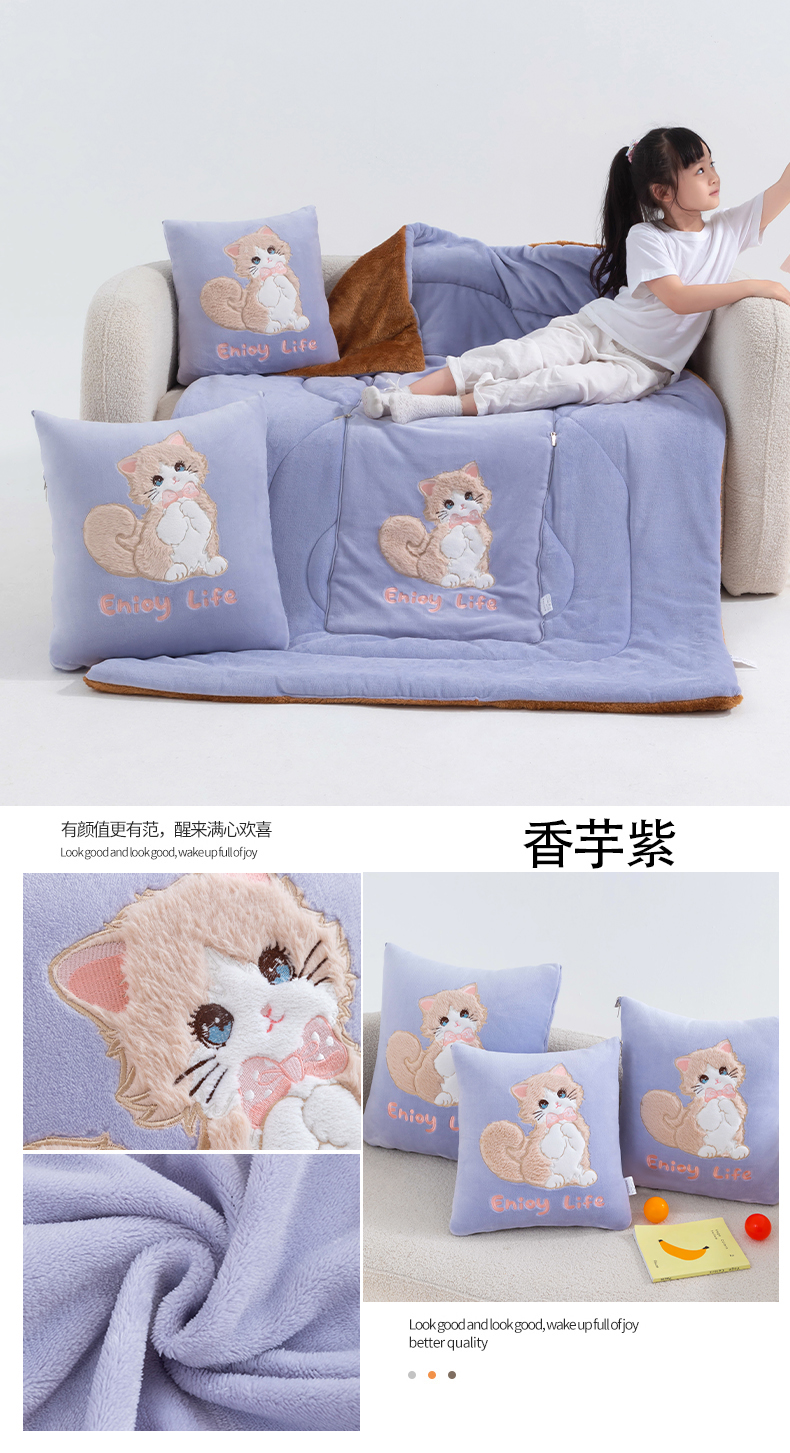 商品名称:照世家纺 2025新款牛奶绒抗菌棉多功能抱枕被-布偶猫(P标)(控价是优惠券后不能低于 40的68,45的98, 50的119) 香芋紫