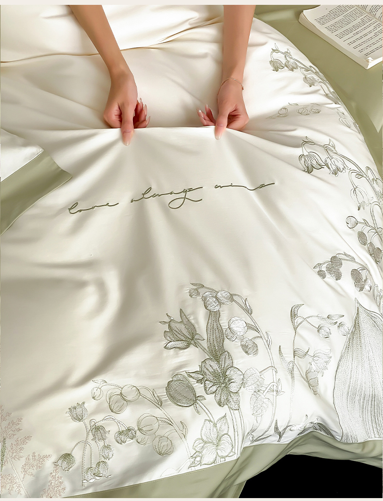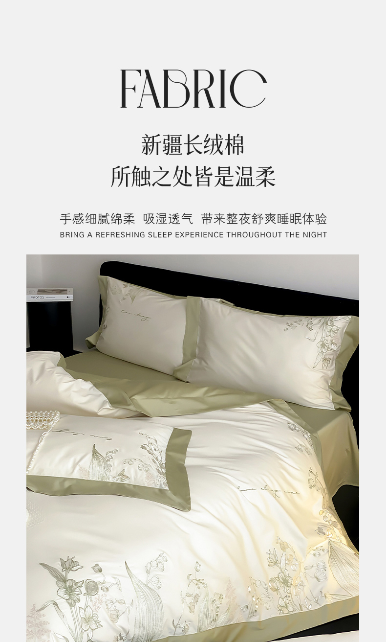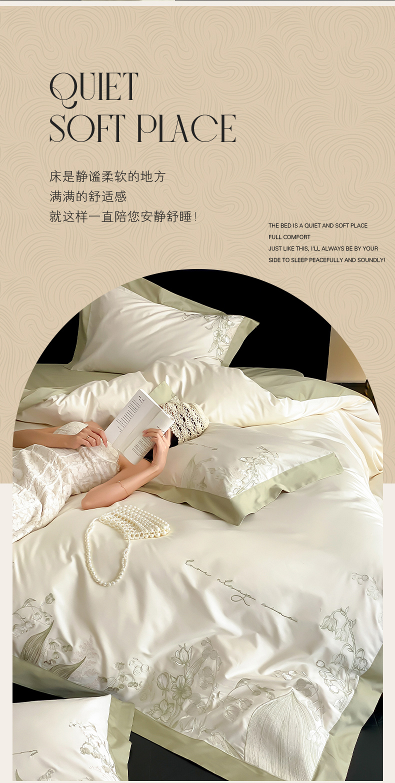 云栖家居 2025新品50支全棉长绒棉刺绣纯棉绣花四件套-铃兰(控价不得低于328) 铃兰-米白