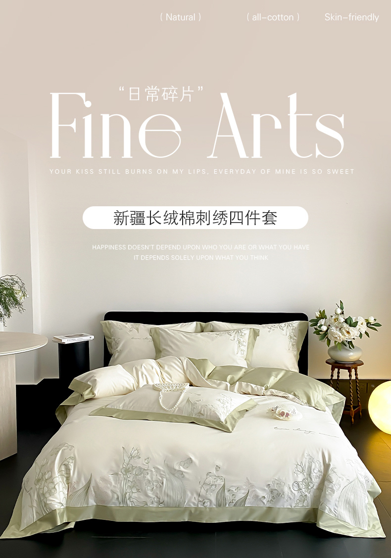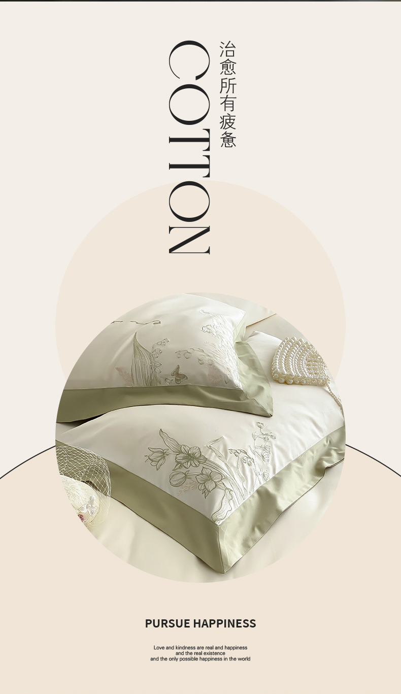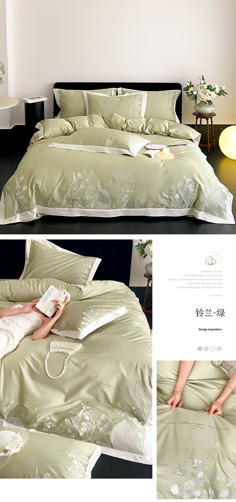 云栖家居 2025新品50支全棉长绒棉刺绣纯棉绣花四件套-铃兰(控价不得低于328) 铃兰-米白