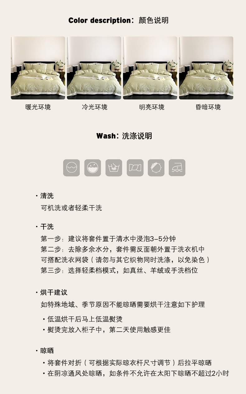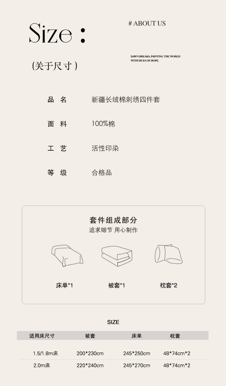 商品名称:云栖家居 2025新品50支全棉长绒棉刺绣纯棉绣花四件套-铃兰(控价不得低于328) 铃兰-米白