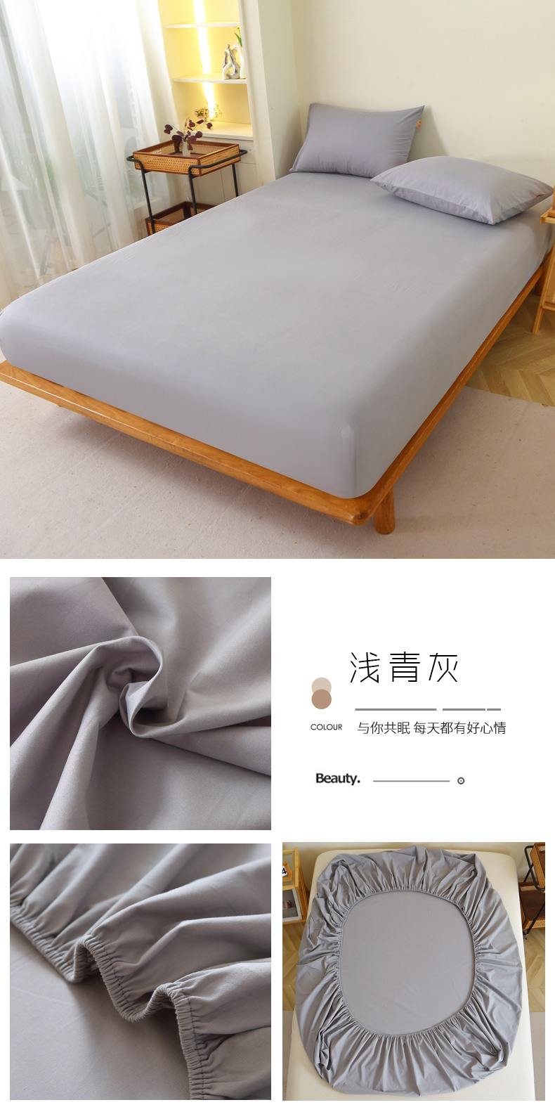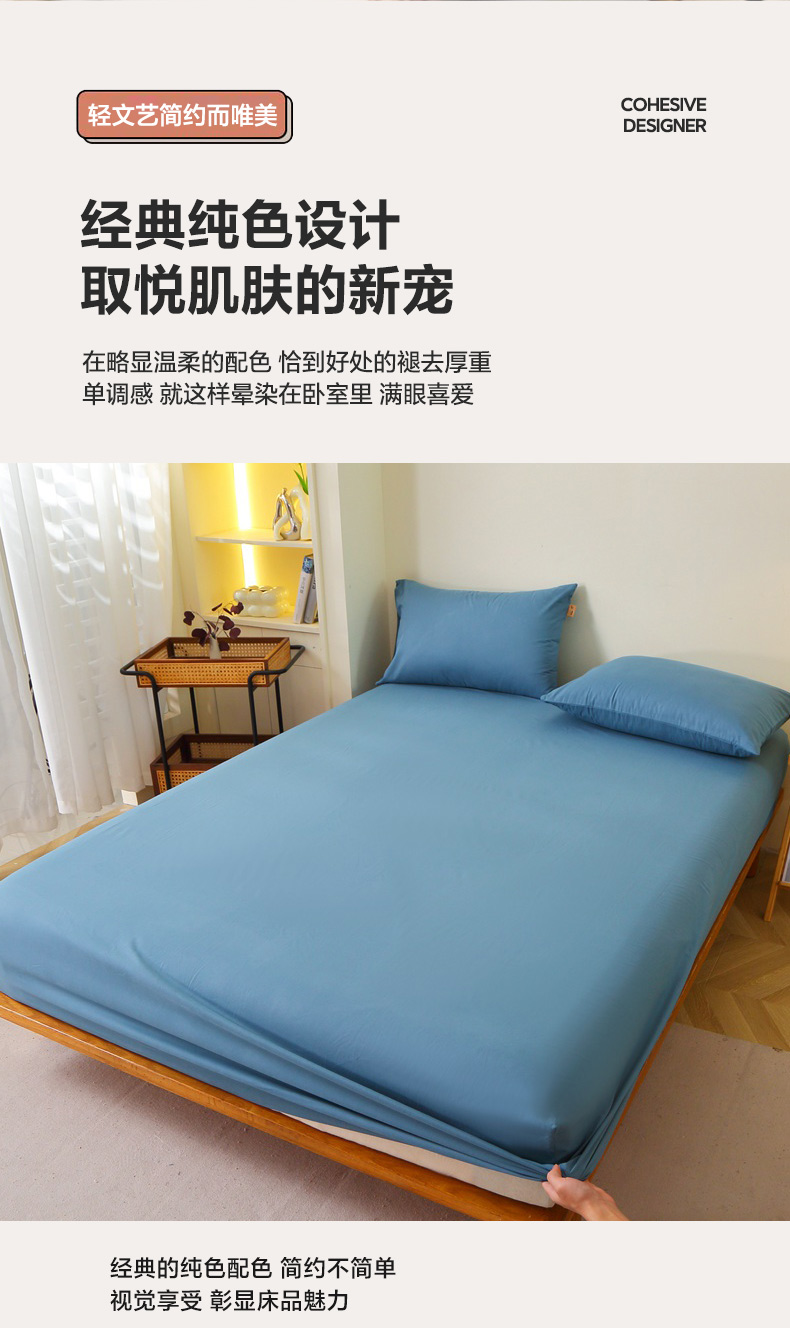 • 91家纺网 家纺一手货源 找家纺 晶缦 2025新款100%纯棉13376纯色喷气全棉磨毛单床笠 暖芸馨-蝶翅蓝