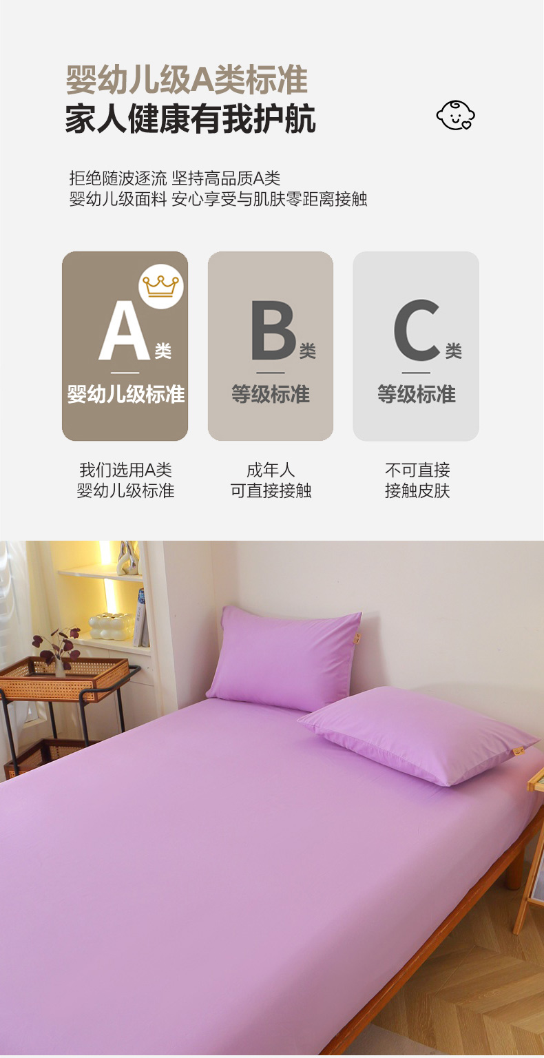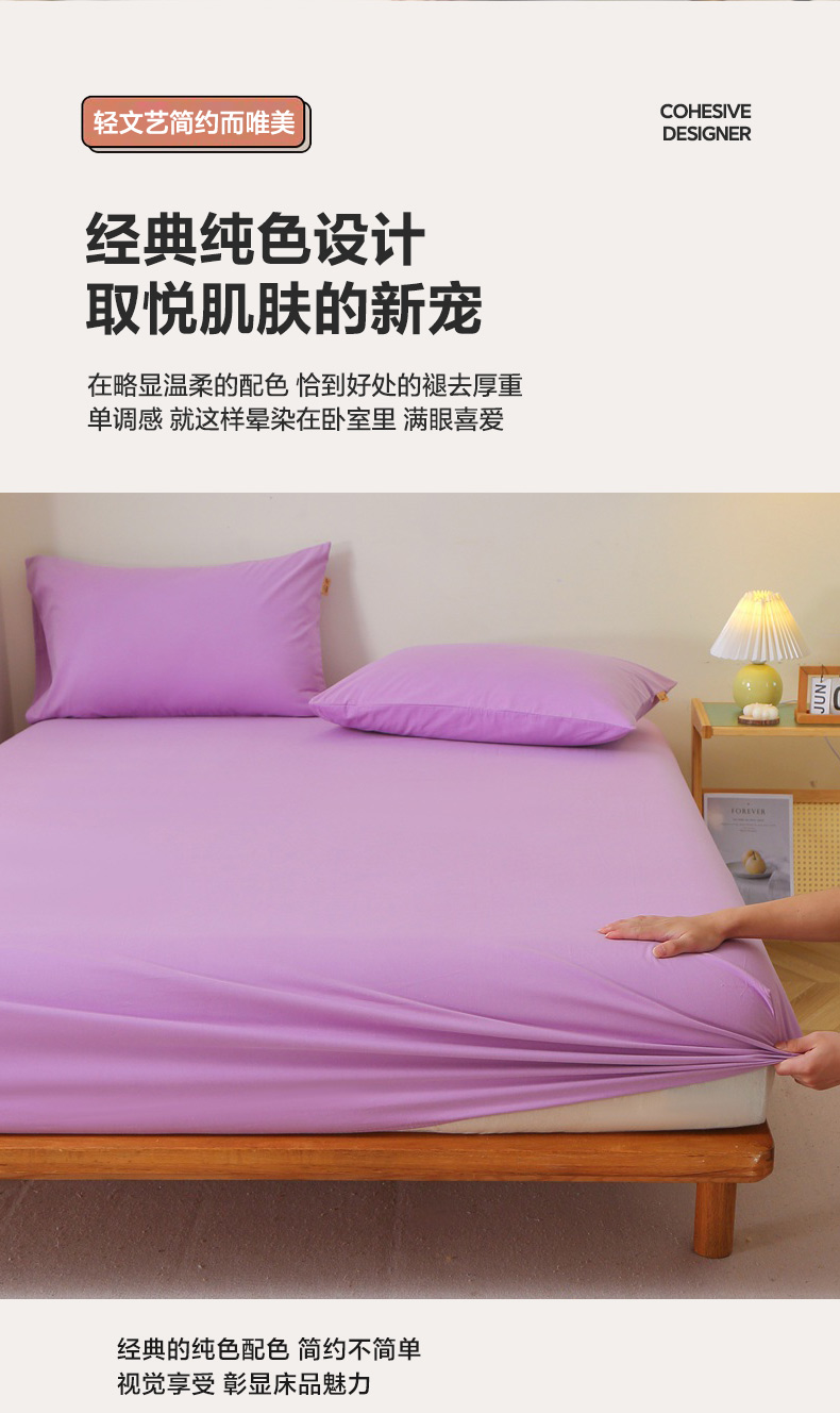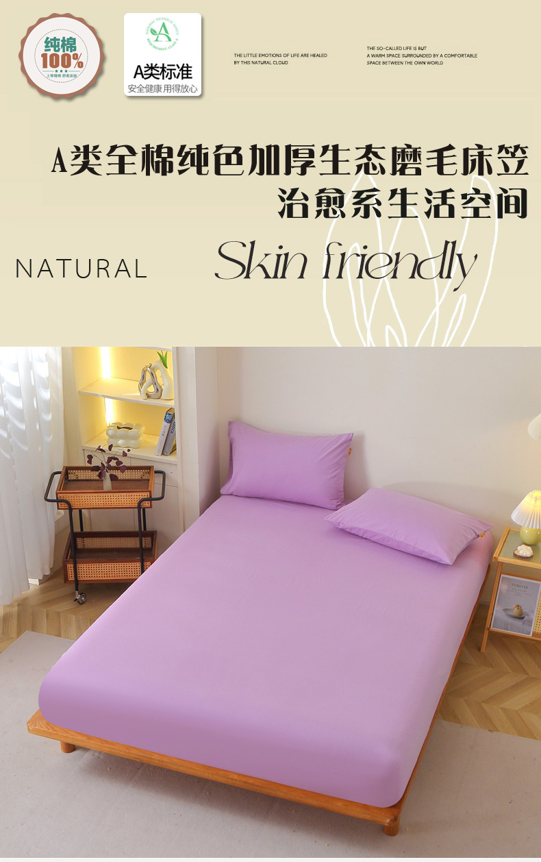 • 91家纺网 家纺一手货源 找家纺 晶缦 2025新款100%纯棉13376纯色喷气全棉磨毛单床笠 暖芸馨-雾紫色