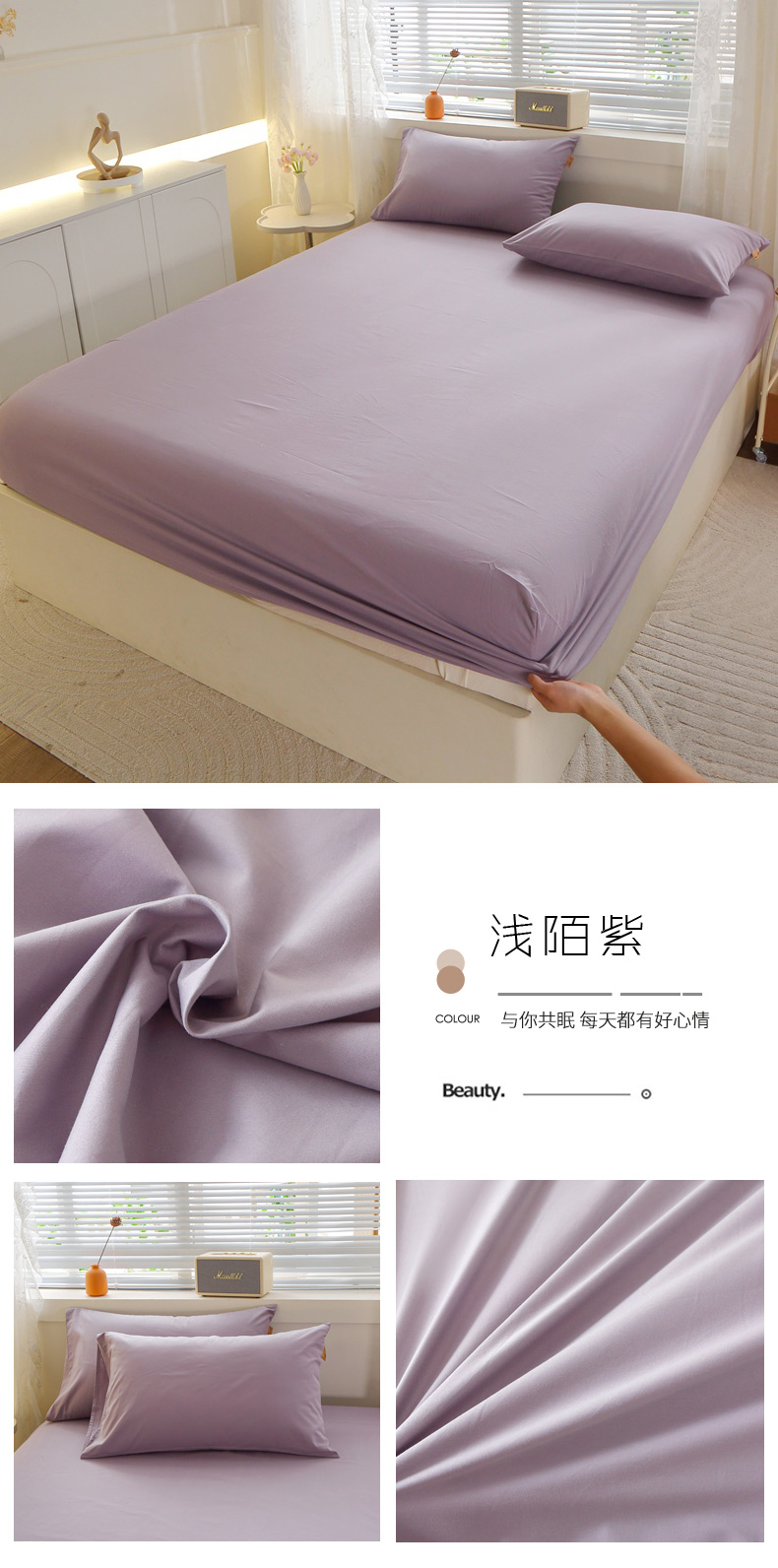 晶缦 2025新款100%纯棉13376纯色喷气全棉磨毛单床笠 暖芸馨-雾紫色