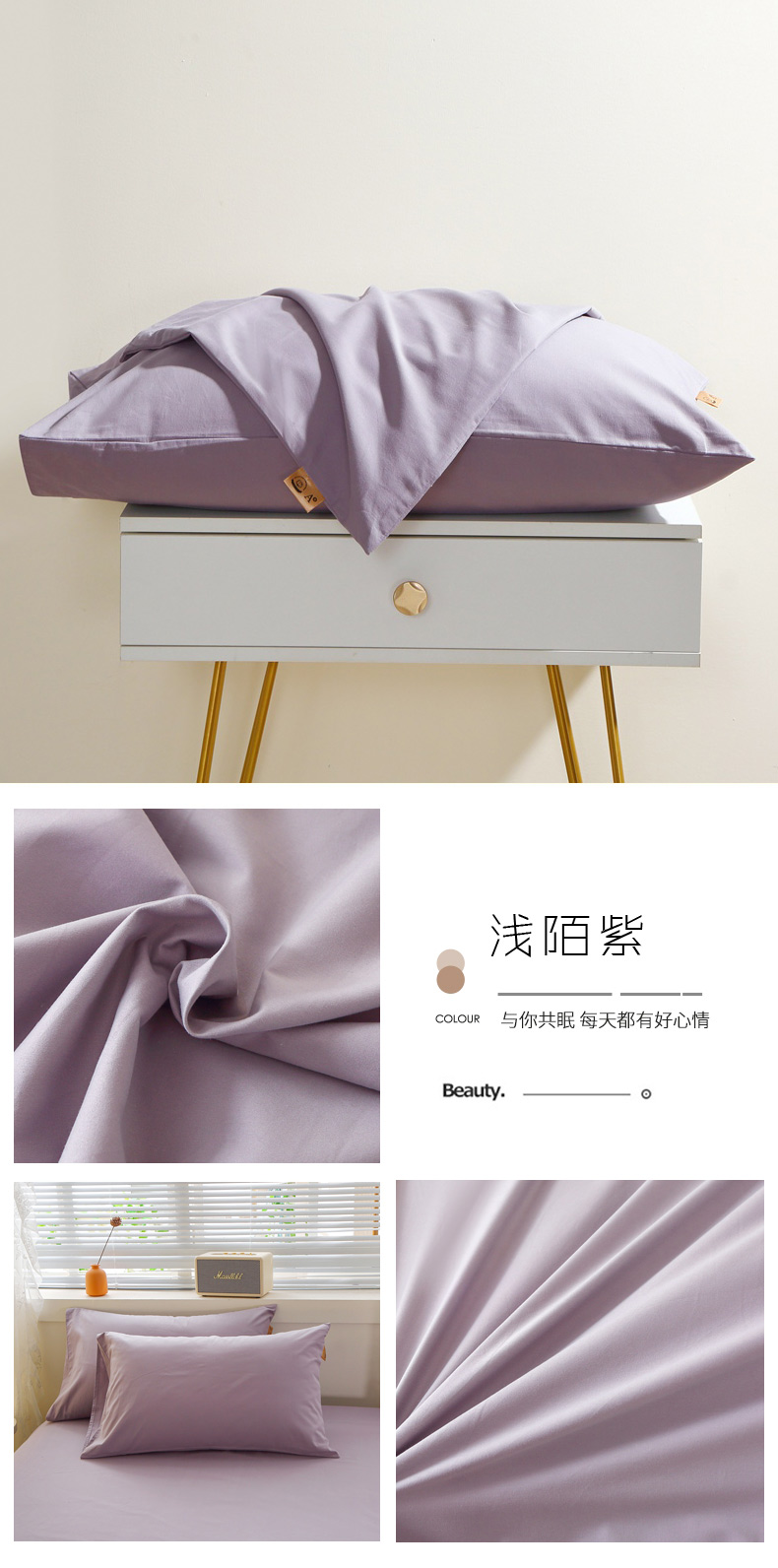 商品名称:晶缦家纺 2025新款100%纯棉13376纯色喷气全棉磨毛四件套和单品被套床单床笠枕套-单枕套 暖芸馨-浅陌紫
